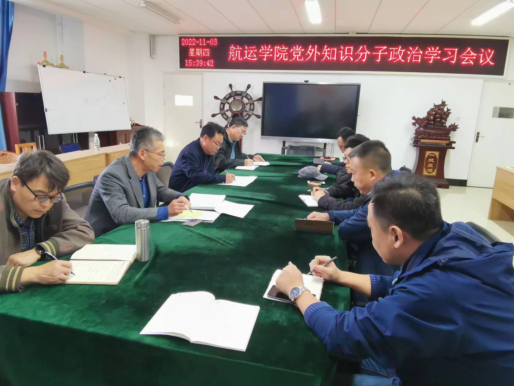 航运学院党委在威海校区2号教学楼B424会议室召开党外知识分子政治学习会议,专题学习党的二十大精神。学院6名党外知识分子参加会议。学院党委书记陈海泳主持会议。