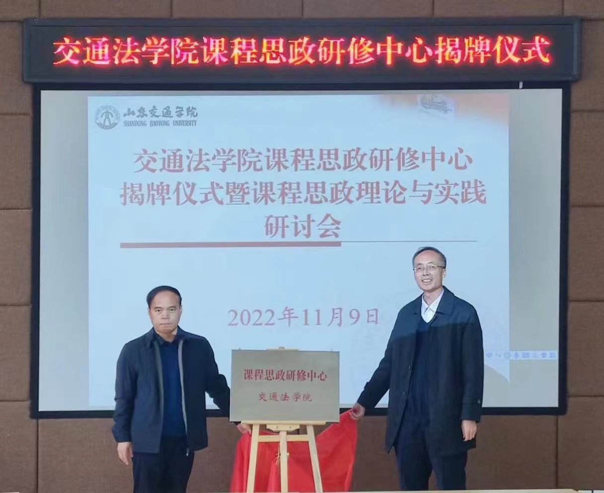 11月9日,交通法学院在长清校区2号教学楼举行课程思政研修中心揭牌仪式暨课程思政理论与实践研讨会。教务处处长汪明栋,交通法学院党委副书记、院长范冠峰,教务处副处长王德利、交通法学院副院长张志文参加活动。
