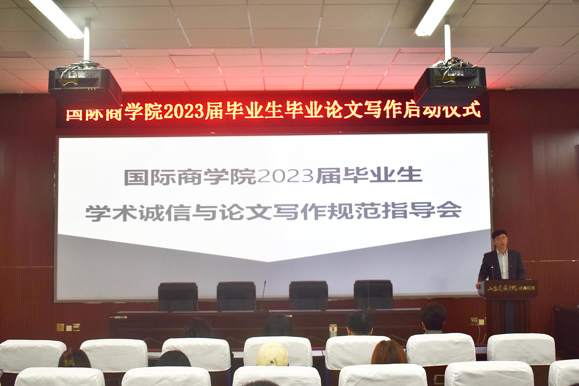 近日,国际商学院在威海校区第二学术报告厅举行2023届毕业生学术诚信与论文写作规范指导会。学院副院长孙龙参加会议。