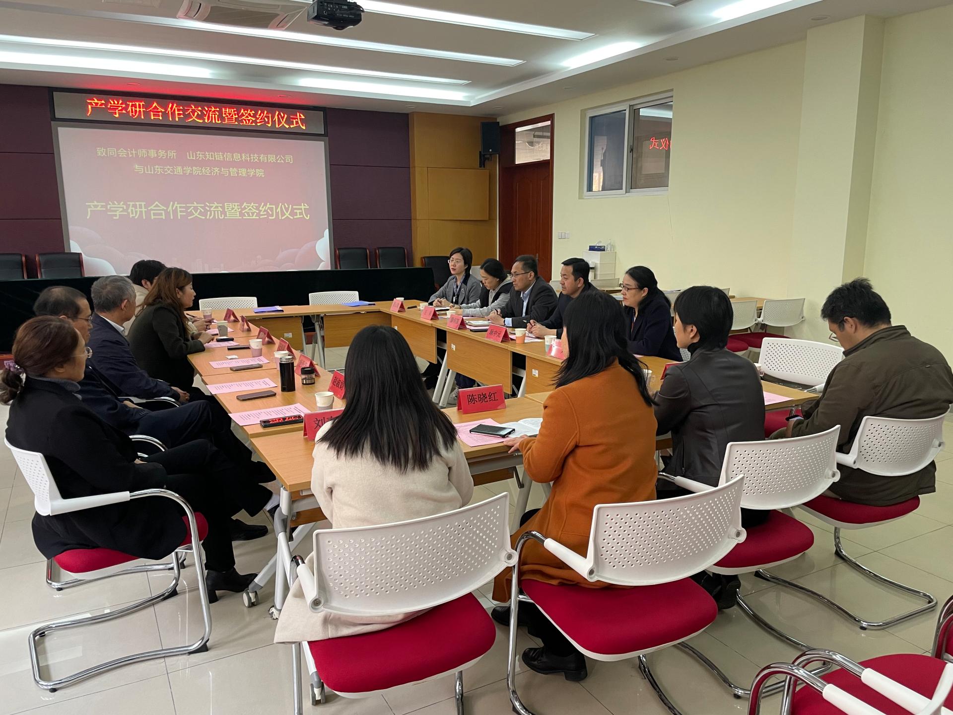 11月11日下午,经济与管理学院与致同会计师事务所(特殊普通合伙)济南分所、山东知链信息科技有限公司在长清校区1B104开展产学研合作交流暨签约仪式。经济与管理学院党委书记滕怀国、院长耿中元,致同会计师事务所济南分所所长王传顺、山东知链信息科技有限公司总经理张永娟等人参加签约仪式。会议由经济与管理学院副院长聂云霞主持。