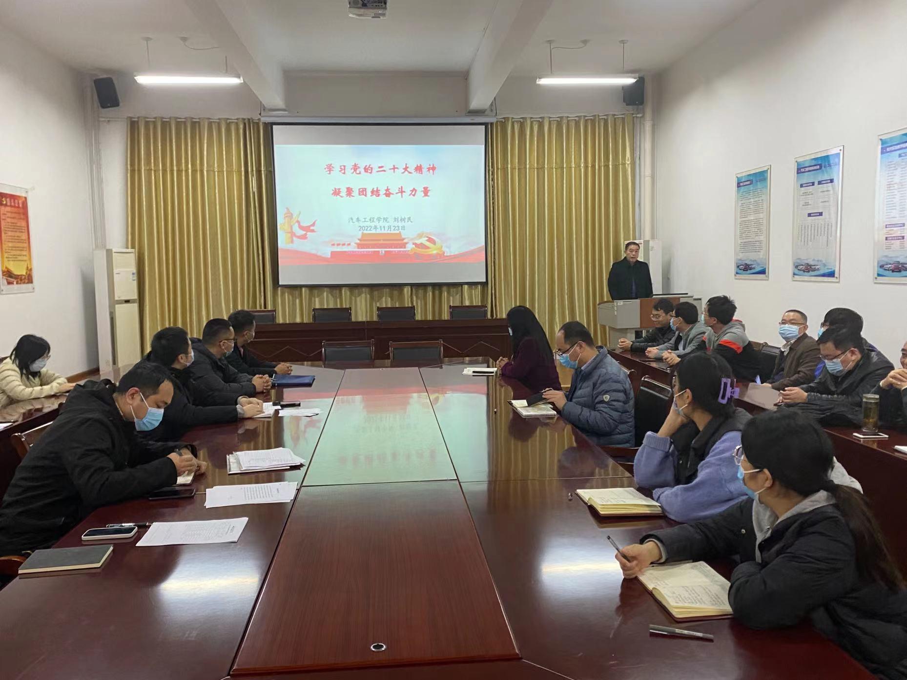 校级宣讲团成员、汽车工程学院党委书记刘树民在长清校区面向汽车工程学院全体教职工开展党的二十大精神宣讲。