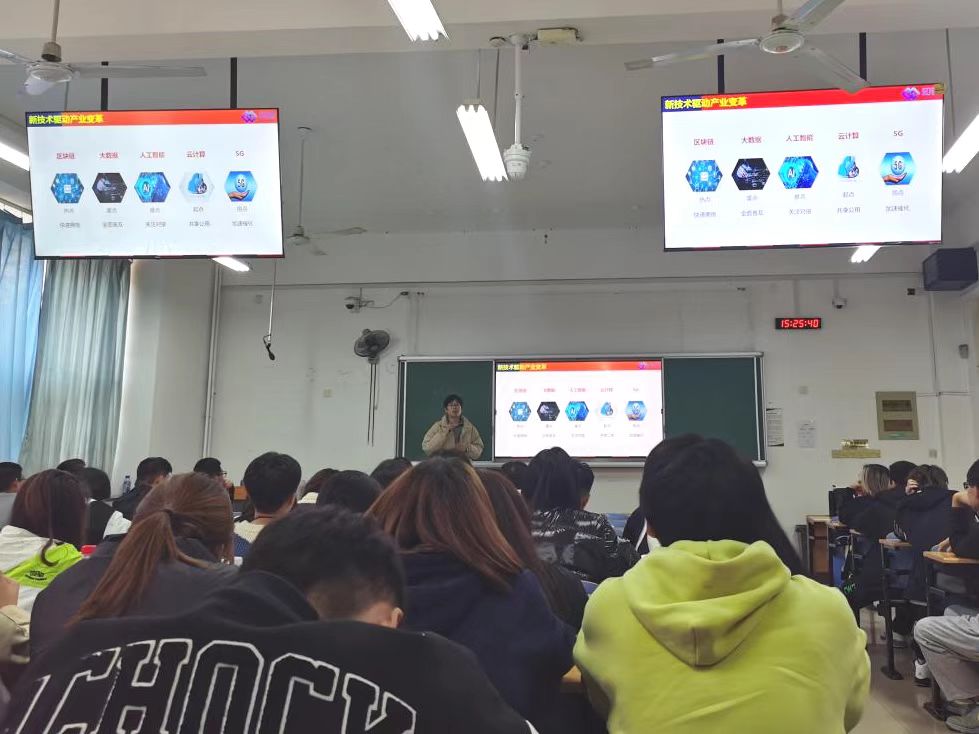 张海滨以“新技术驱动产业变革”为切入点,运用详实生动的工作案例分享了“区块链及大数据技术在我国产业发展中的趋势及影响”“区块链及大数据技术应用的业务场景”“区块链与大数据产业需要什么样的人才”等内容,使学生从行业实操角度对区块链与大数据技术有了更深入的认知,激发学生对区块链和大数据技术的求知欲以及对数字经济的学习热情。