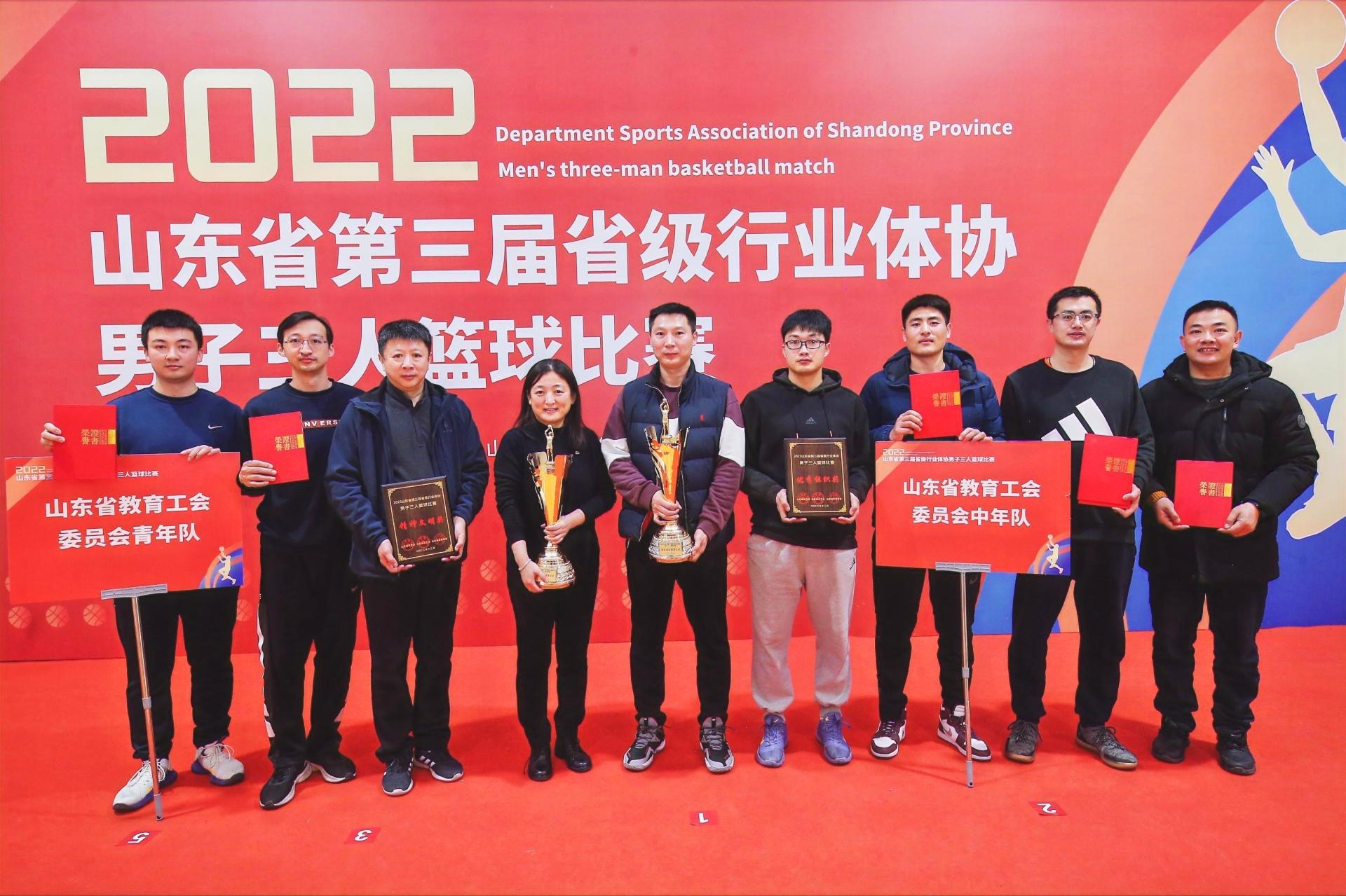 2月16日-17日,山东省第三届省级行业体协男子三人篮球赛在山东省体育中心羽毛球综合馆举行。我校教工篮球队参加比赛,分别获得篮球赛青年组第五名、中年组第五名。学校分别获“优秀组织奖”“精神文明奖”。