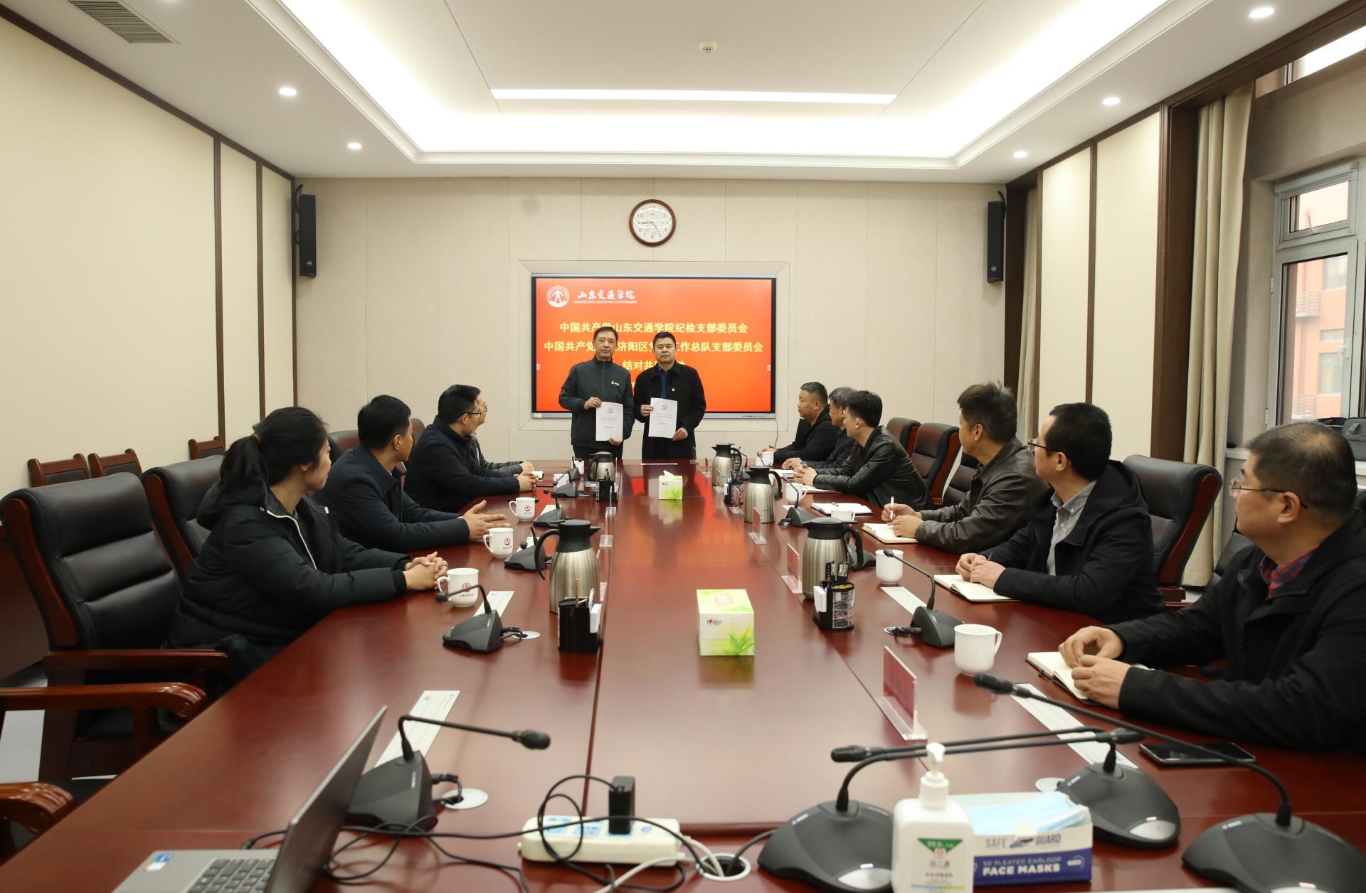 双方党支部书记就深入挖掘廉洁文化资源,开展“党建联建 廉洁共建”廉洁文化主题活动,共同推进廉洁文化建设达成一致意见,并就学校在济阳设立大学生创新创业电商平台,助力乡村振兴方案进行探讨交流,双方签署党支部结对共建协议。活动中,双方党支部党员共同参观了我校《共产党宣言》主题展和汽车文化博物馆。