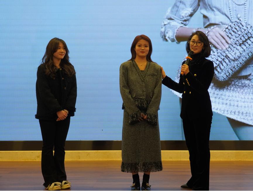 培训分为礼仪基础知识讲座和场景模拟实训两部分。在基础知识讲座中,邓平从“个人形象设计”“妆容手法介绍”“称呼注意事项”“日常礼仪讲解”等方面做深入浅出地讲解,引导广大同学养成良好的礼仪规范习惯,提升自身形象气质。在场景模拟实训环节中,邓平以主持人、啦啦操队员、汉服学生三种妆容为例,详细讲解了三种不同妆容的细节打造技巧,并现场带领四位同学对不同妆容进行改造与修饰,在实际操作中提升大家的审美水平和化妆技巧。在互动环节,邓平就学习、生活等方面的常见的礼仪相关问题与在场人员进行深入交流。