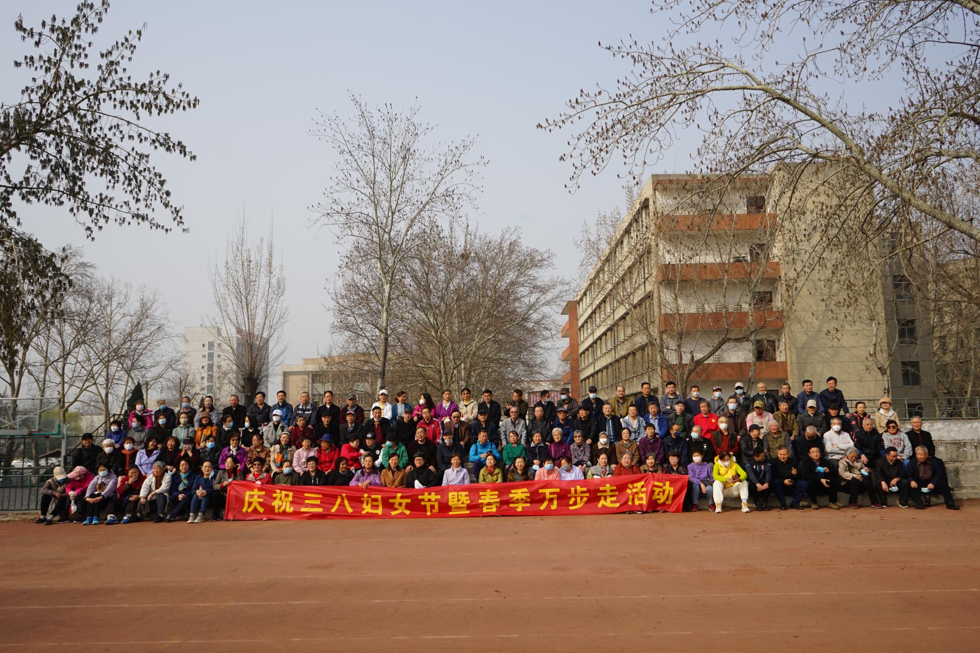 离退休工作处在无影山校区田径场组织离退休职工开展庆祝“三八”妇女节暨春季万步走活动。