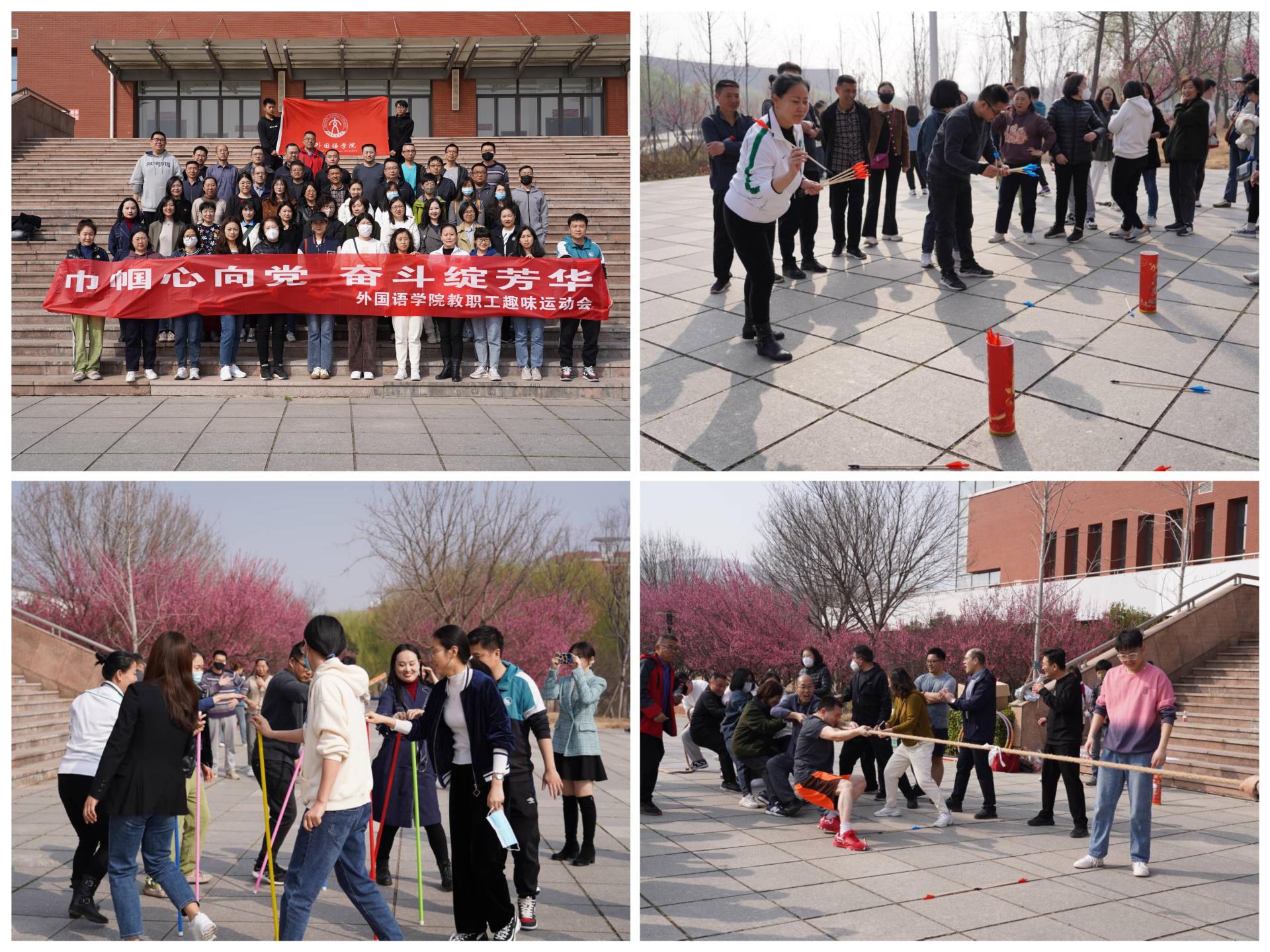 外国语学院举行了“巾帼心向党 奋斗绽芳华”教职工趣味运动会。