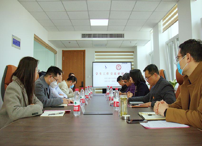山东大学(威海)商学院党委副书记郭晓妮介绍了山东大学(威海)商学院的发展历程、师资队伍、人才培养和教学科研等基本情况。刘洋介绍了近年来我校国际商学院辅导员队伍建设及学生工作开展取得的成果。双方围绕学生安全、心理健康、宣传工作、就业工作、学生学术科技工作等方面深入交流,并就共同关注的热点和难点问题分享工作经验和做法,围绕如何有效推进学生工作提质增效达成共识。双方一致表示,将以此次交流为契机,深化交流合作,共谋发展提升,共同谱写双方学生工作高质量发展新篇章。