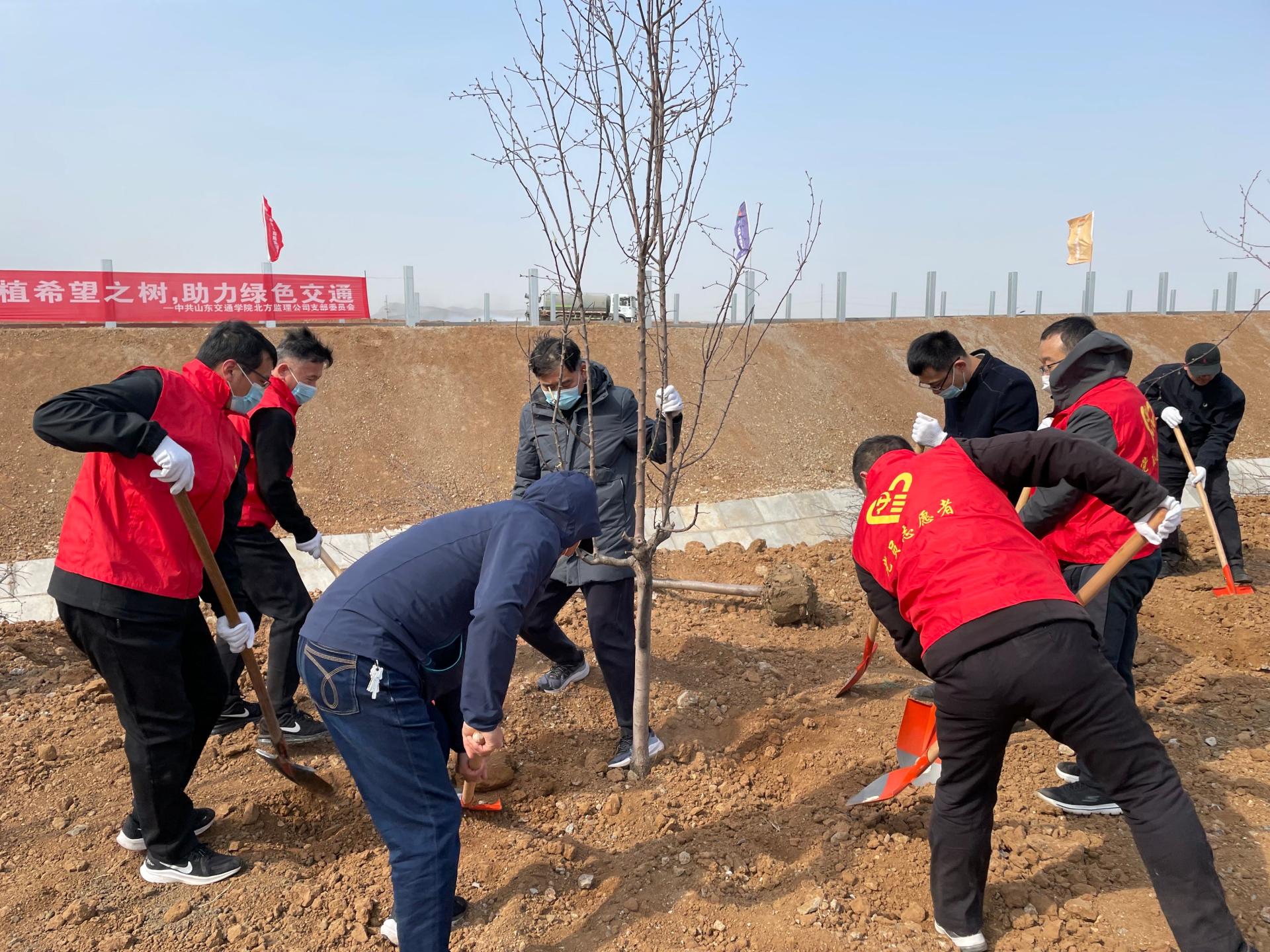 3月11日上午,我校交通基础设施建设工程研究中心(北方监理公司)党支部联合山东省交通运输厅工程建设事务中心党总支、济南市交通工程质量与安全中心党总支及山东高速基础设施建设有限公司工程建设第三党支部开展“种植希望之树、助力绿色交通”主题活动。