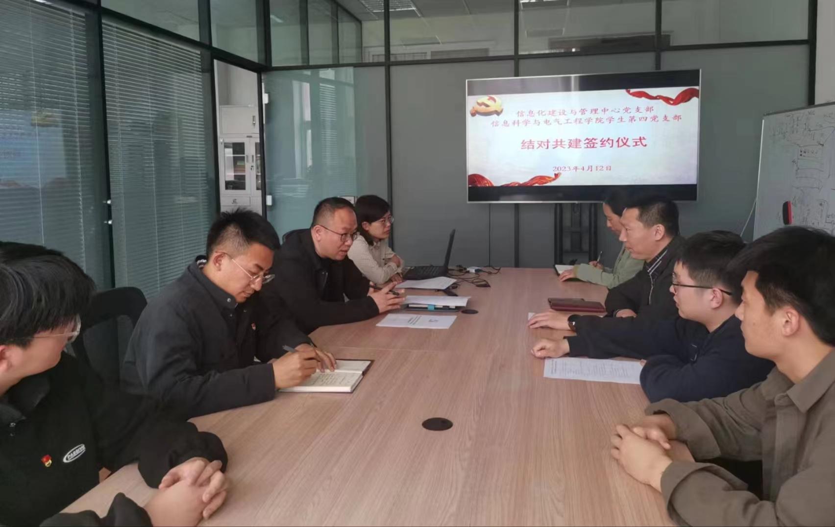 4月12日下午,信息化建设与管理中心党支部与信息科学与电气工程学院(人工智能学院)学生第四党支部开展结对共建活动。