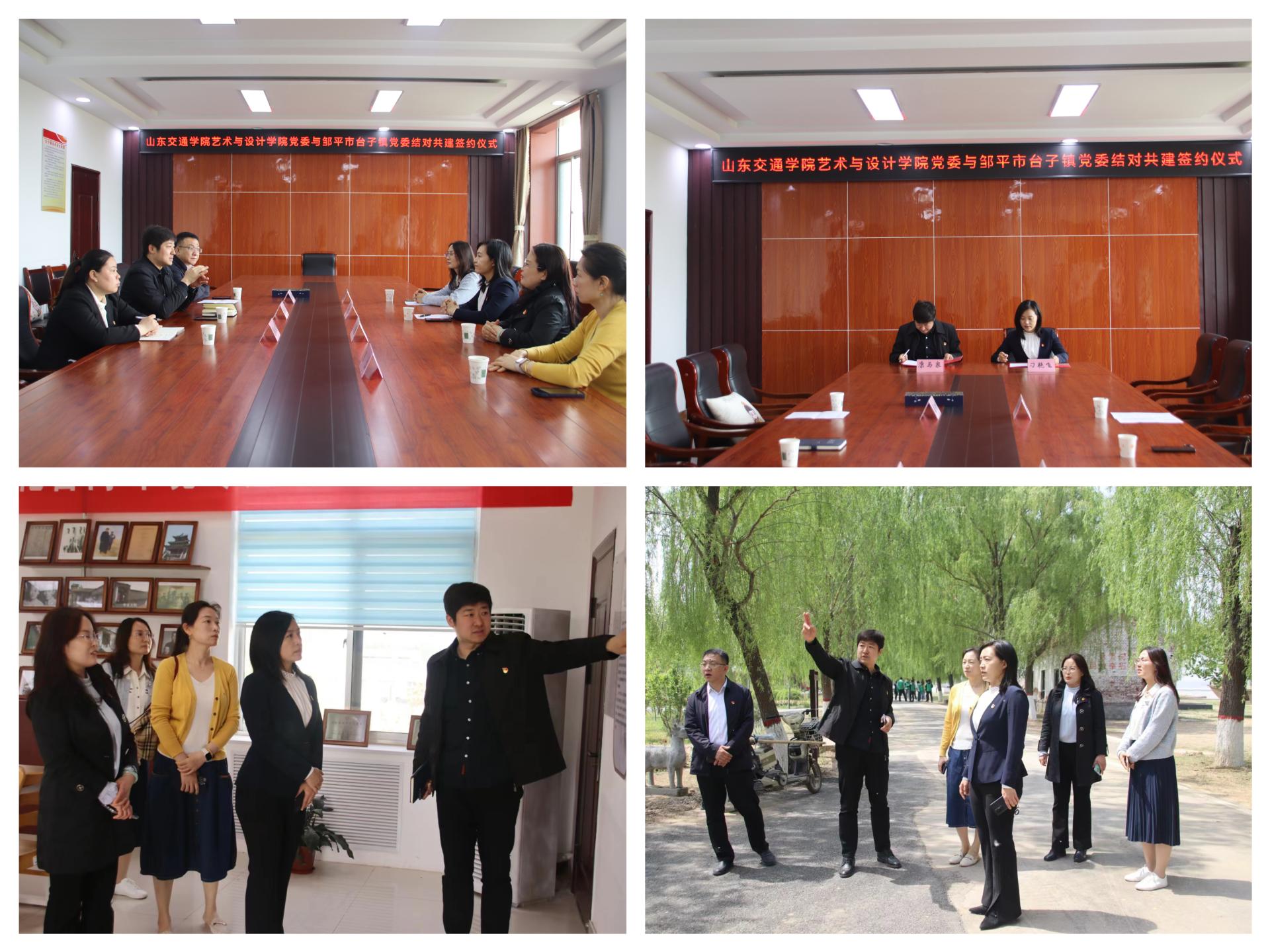 艺术与设计学院党委赴邹平市与邹平市台子镇党委联合开展结对共建活动。艺术与设计学院党委书记刁艳飞、副书记亓秀梅,台子镇党委书记康与泉、副书记夏尚炜以及双方相关工作人员参加活动。