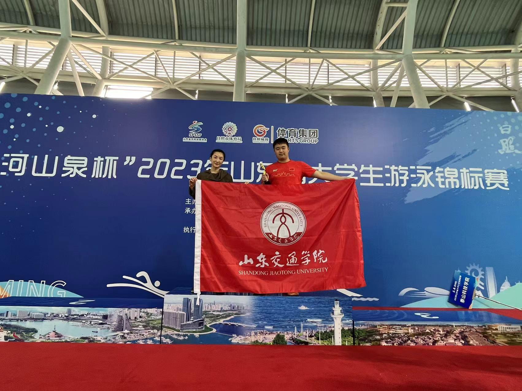近日,2023年山东省大学生游泳锦标赛在日照游泳中心落下帷幕。我校游泳队在比赛中获得男子甲组团体“第六名”,队员赵子豪夺得200米自由泳冠军和50米自由泳亚军。