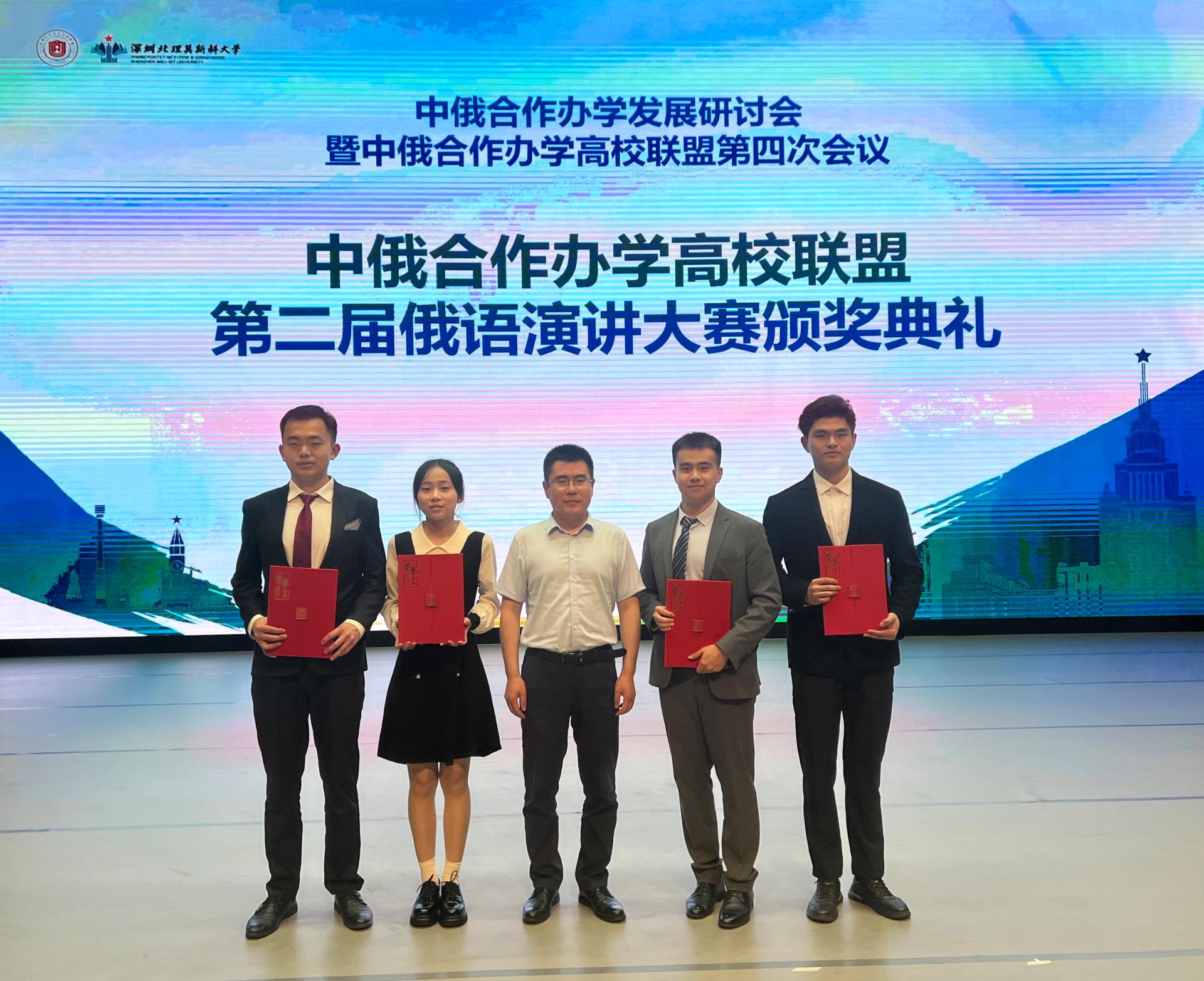 5月13日,第二届中俄合作办学高校俄语演讲比赛全国总决赛在深圳落下帷幕。国际教育学院、顿河学院学生赵东乐、宋诚浩分获高年级组一等奖第1名、第2名,宋荣昶、韩雨彤分获低年级组一等奖第2名、第5名的优异成绩。我校是唯一一所蝉联两届中俄合作办学高校俄语演讲比赛高、低年级组一等奖的高校。