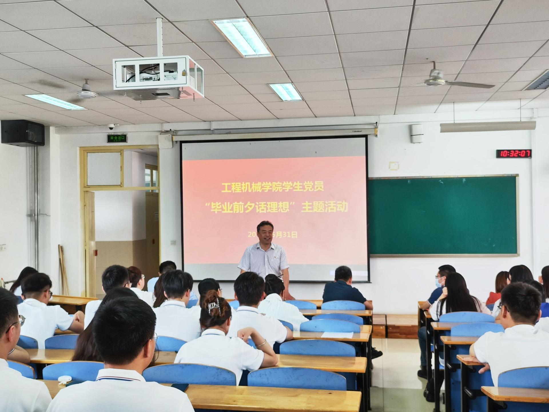 工程机械学院开展学生党员“毕业前夕话理想”主题活动。学院党委书记陈加峰以《牢记总书记嘱托,争做交通强国匠人》为题,为毕业生党员讲授专题党课,希望全体毕业生要坚持融会贯通、学以致用、胸怀天下,努力在理论学习中提升思想境界,牢记使命担当、秉承匠人精神,积极投身交通强国建设一线,为实现第二个百年奋斗目标贡献青春力量。学院党委副书记邓涛成为过“政治生日”的毕业生党员代表赠送贺卡,勉励他们始终牢记自己的政治身份,展现奋斗、奉献的行动自觉。9名毕业生党员代表分别回顾了在校学习和成长的历程。全体党员重温入党誓词,面向党旗进行庄严宣誓。