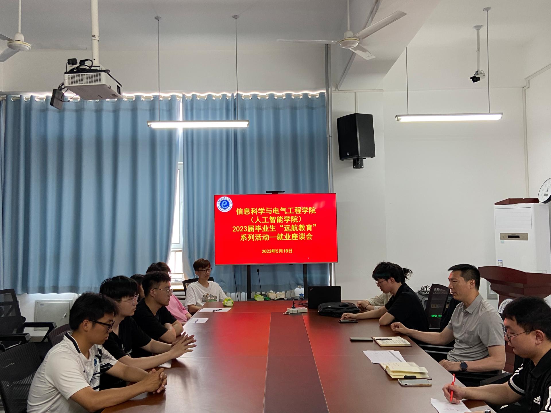 信息科学与电气工程学院(人工智能学院)举办2023届毕业生“远航教育”系列活动。学院党委副书记庄伟与毕业生进行座谈,希望同学们树立正确择业观、高质量就业,树立远大理想、在工作岗位上接续奋斗,并加强与母校的联络沟通,关心关注学校、学院的建设发展。通过座谈会,深入了解毕业生现阶段在毕业、升学、就业等方面的情况,听取了大家关于就业工作和学风建设方面的意见建议。后续,学院还将继续开展党员座谈会、优秀毕业生经验分享会等系列活动,做好学生服务工作。