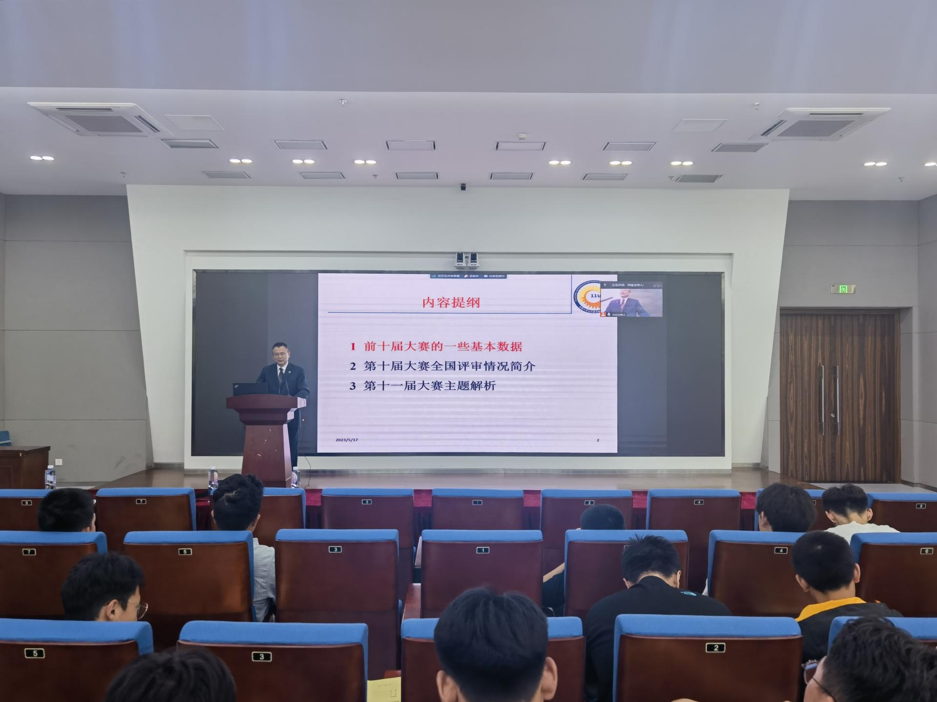 此次讲座由我校团委主办、工程机械学院承办,采取线上线下相结合的方式进行。活动中,王晶介绍了大赛的发展历程、前十届大赛的基本数据,重点讲解了第十届大赛全国评审情况、得分要求,现场展示了历届实物组优秀作品并细致分析部分作品未获奖原因,对第十一届大赛的主题和内容进行解读,并解答了指导教师、学生现场提出的问题。