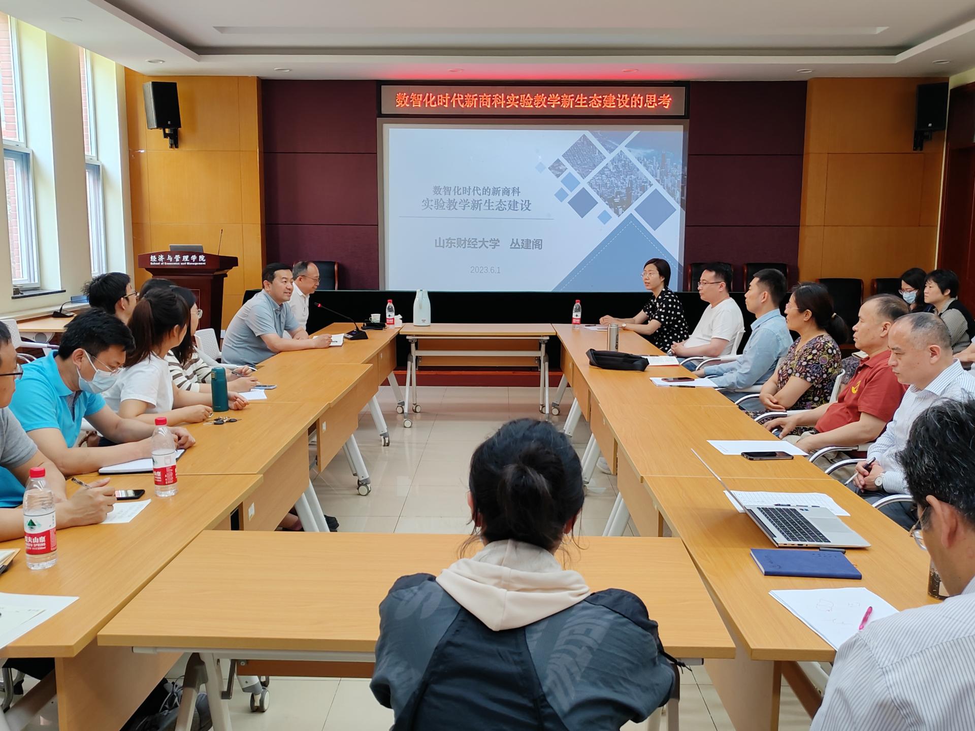 6月1日下午,学校在长清校区1号教学楼B104会议室举办“数智化时代新商科实验教学新生态建设”讲座。活动由教务处教师教学发展中心主办、经济与管理学院承办,邀请山东财经大学教授丛建阁担任主讲嘉宾。
