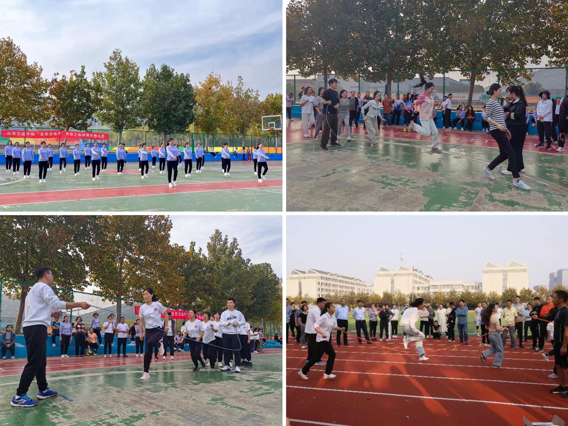 为丰富校园文化生活,提升教职工身体素质,10月25日下午,由学校工会主办,体育教学部、基础教学部承办的“健康生活悦动起来”教职工集体跳长绳比赛在长清校区和威海校区两地同时开展。