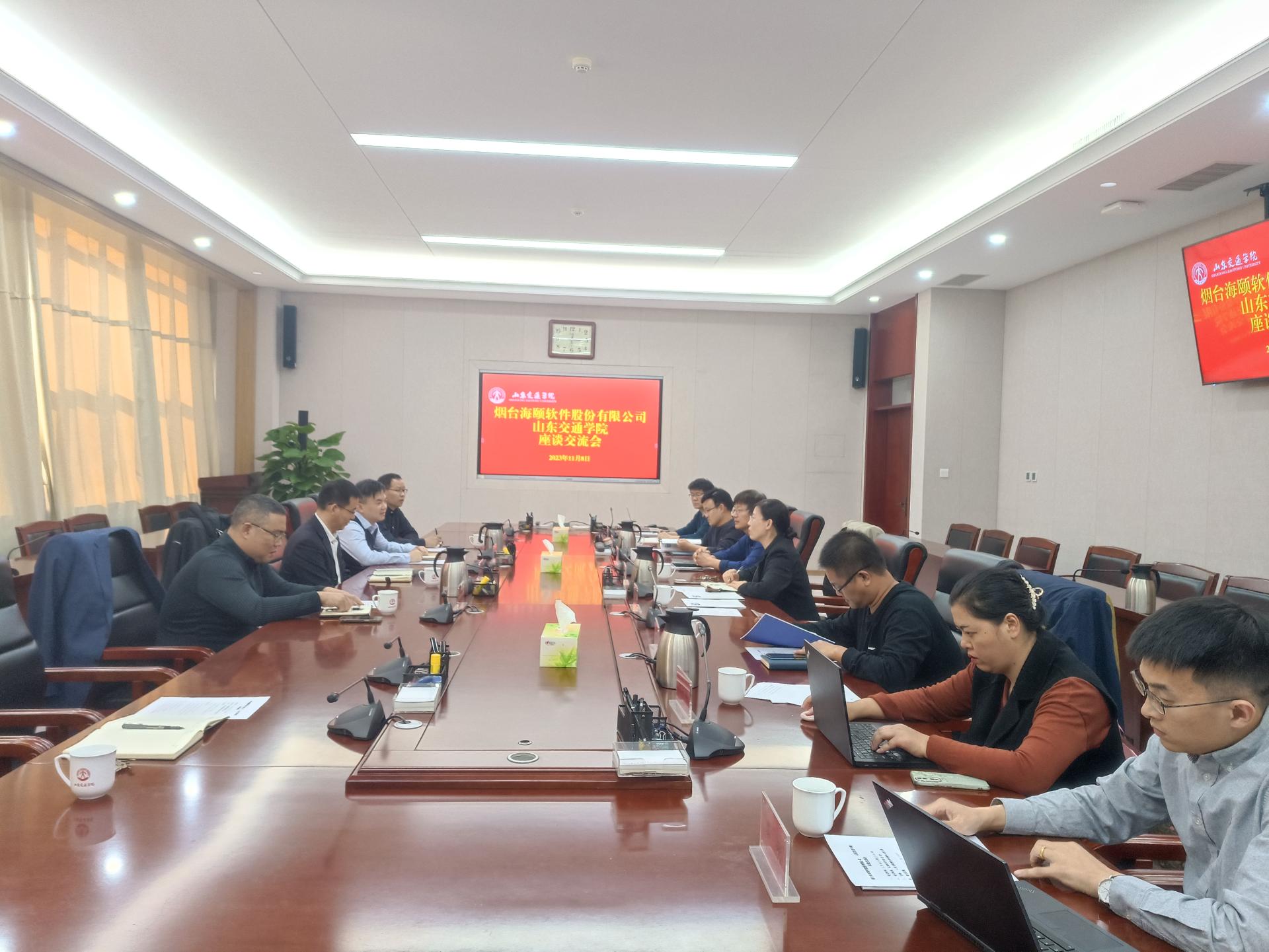 11月8日,烟台海颐软件股份有限公司副总经理郇长武一行来我校交流座谈,科研处处长黄玉娟参加并主持座谈会。