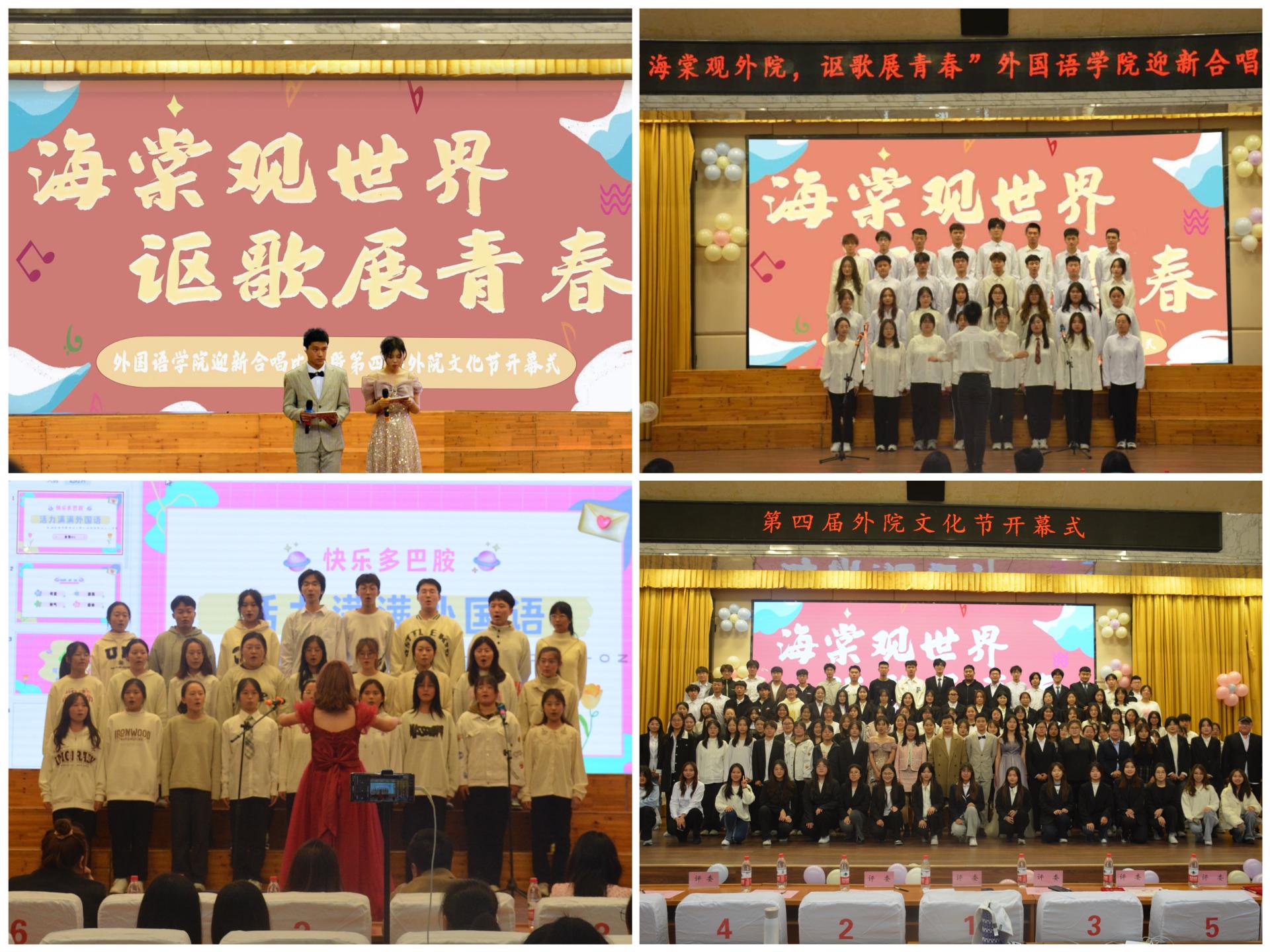 11月8日,外国语学院在长清校区学术报告厅举办“海棠观世界,讴歌展青春”迎新合唱比赛暨第四届外院文化节开幕式。
