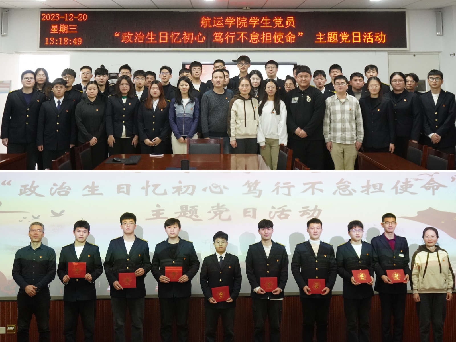 航运学院党委开展“政治生日忆初心,笃行不怠担使命”主题党日活动。活动中,航运学院党委副书记杜强为过“政治生日”的32名学生党员赠送贺卡,他勉励全体党员要坚定不移听党话、跟党走,努力成长为堪当民族复兴重任的时代新人;全体党员面向党旗重温入党誓词。