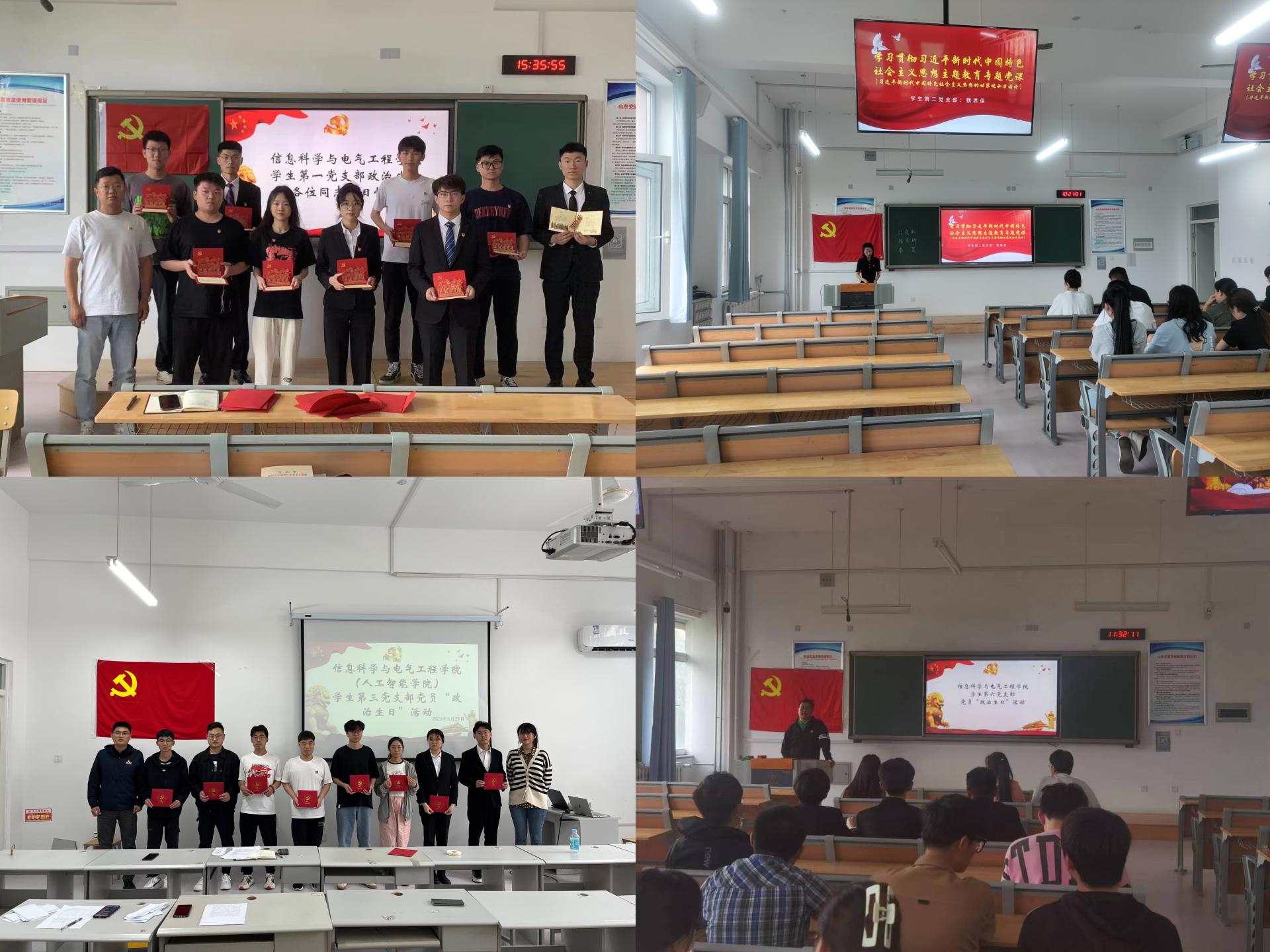 信息科学与电气工程学院(人工智能学院)学生党支部开展“过‘政治生日’,守入党初心”活动。 活动中,学生党支部通过“一场谈心谈话葆忠心”“一次入党宣誓葆初心”“一堂专题党课葆红心”“一个‘生日愿望’葆恒心”“一张‘生日贺卡’送暖心”“一件帮扶实事献爱心”等形式,引领学生党员履行党员义务、发挥模范作用、贡献青春力量。