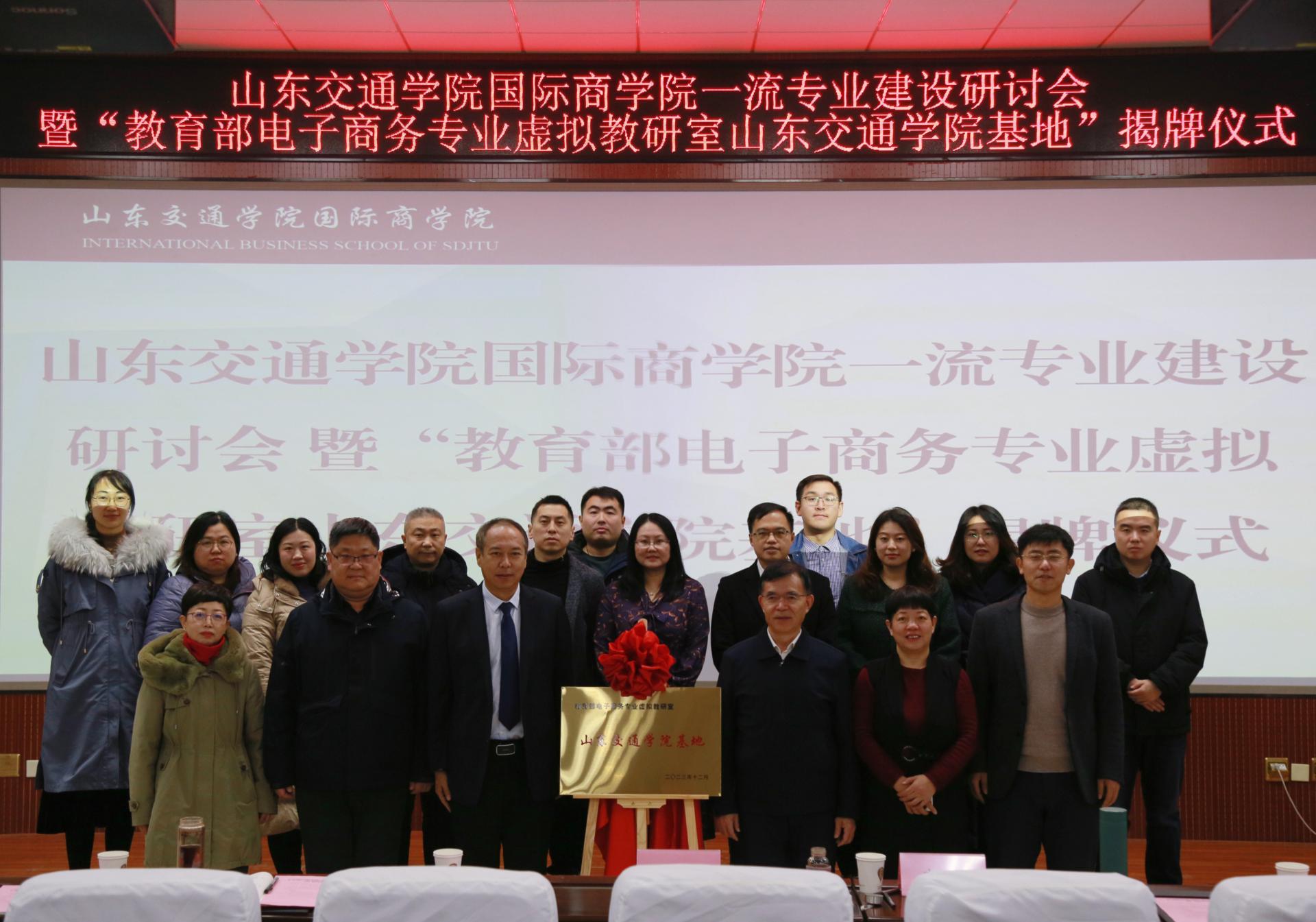 12月31日,国际商学院举行一流专业建设研讨会暨教育部电子商务专业虚拟教研室山东交通学院基地揭牌仪式,教育部高等学校电子商务类专业教学指导委员会副主任委员、教育部首批虚拟教研室建设试点——电子商务专业虚拟教研室带头人、西安交通大学二级教授李琪,电子商务类专业教学指导委员会副主任委员、厦门大学二级教授彭丽芳,我校国际商学院党委书记刘佳军、副院长孙龙,教务处副处长周兆欣参加活动。