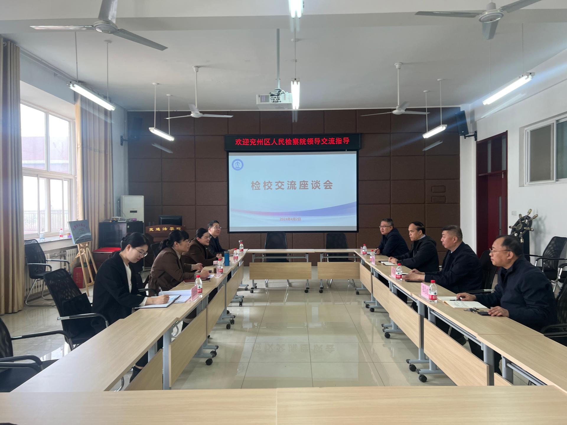 4月2日,济宁市兖州区人民检察院党组副书记、副检察长王隽一行来我校交通法学院开展检校交流座谈会。交通法学院党委书记闫淼、院长范冠峰参加会议。
