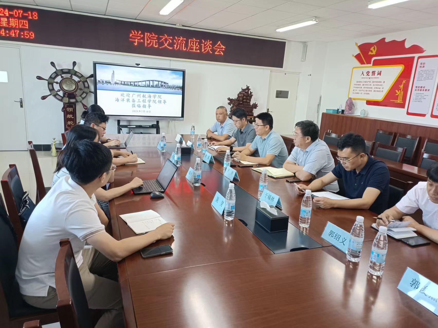 7月18日,广州航海学院海洋装备工程学院院长陈爱国一行4人来我校调研座谈。我校航运学院院长张强主持会议。