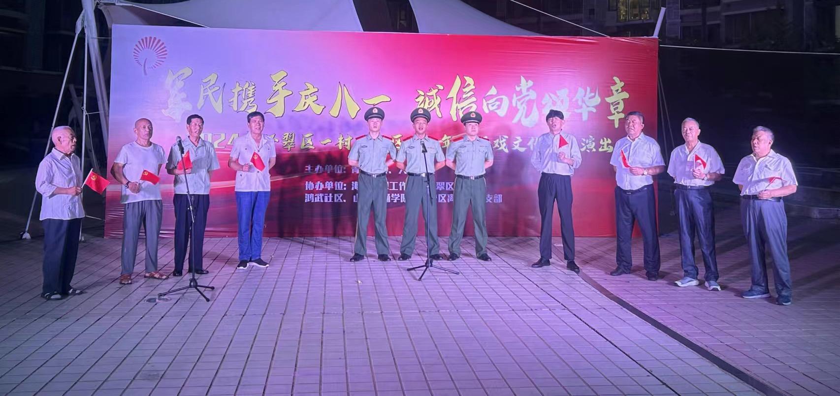 7月31日,由威海市环翠区环翠楼街道大桥社区党委主办,我校威海校区离退休党支部参与协办的八一建军节文艺汇演活动在威海市环翠区环翠楼街道大桥社区广场举行。