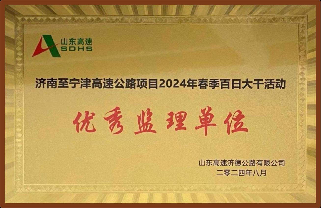 近日,在山东高速济德公路有限公司举办的济南至宁津高速公路项目2024年春季百日大干活动中,我校交通基础设施建设工程研究中心(济南北方交通)济南至宁津高速公路第一驻地办获评“优秀监理单位”,项目负责人获评“优秀驻地监理工程师”,8名监理人员分别获评“优秀专监工程师”“优秀试验检测人员”“优秀安全生产管理人员”“优秀监理人员”等荣誉称号。