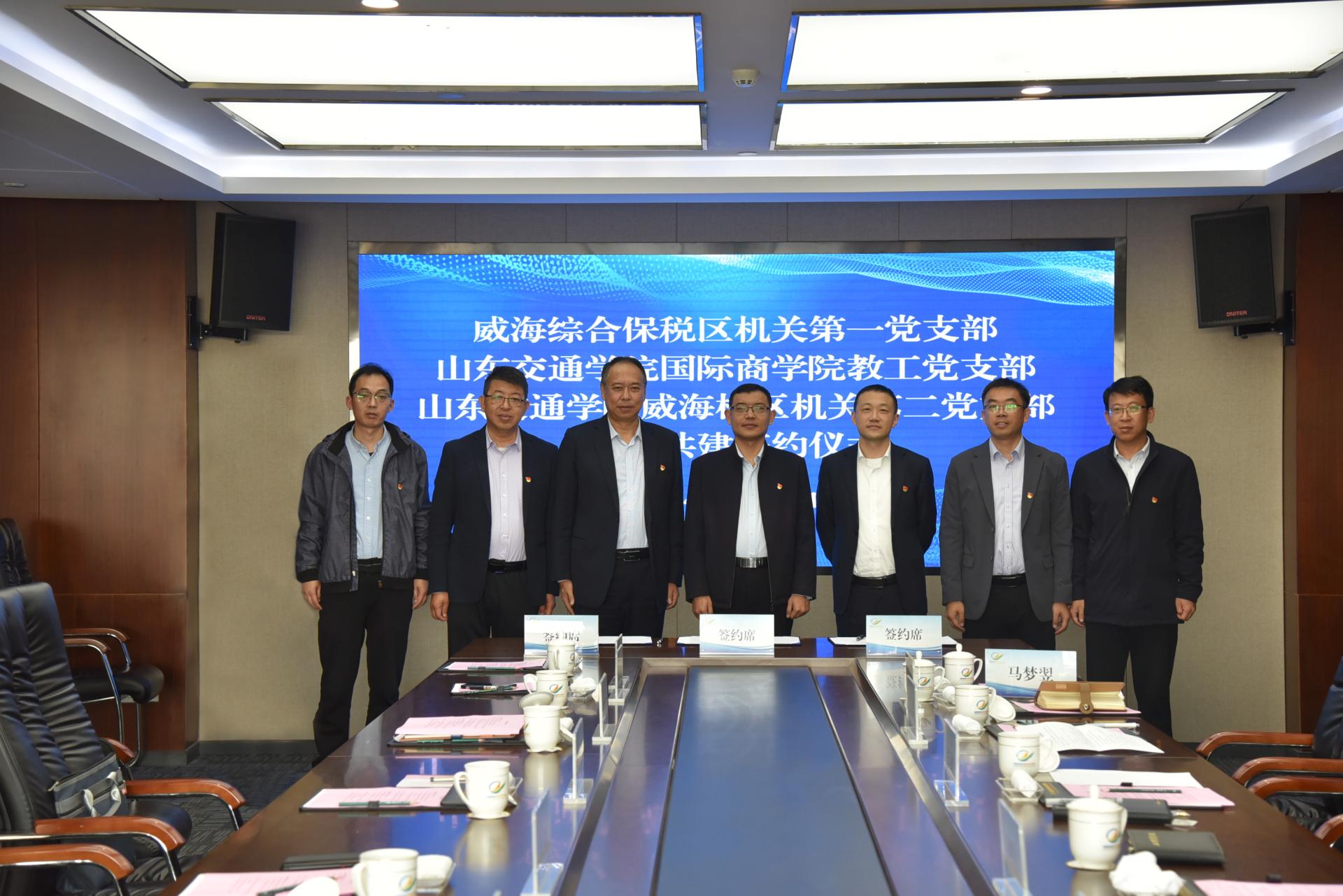 活动中,三个党支部签订结对共建协议并开展座谈。张运鹏对学校的到访表示欢迎,希望双方进一步拓展校地合作,实现学校高质量发展与地方经济社会发展同频共振;朱鸿义对威海综合保税区的热情接待表示感谢,他表示,威海校区将以此为契机,充分发挥学校人才智力资源优势,依托威海综合保税区丰富的跨境电商资源优势,共同搭建实习实训基地建设等人才培养合作平台;刘佳军介绍了国际商学院学科专业建设、科研成效、招生就业等基本情况,并期待双方在科研成果转化等方面开展全方位合作;冯强介绍了威海校区机关第二党支部党建特色品牌建设等情况。