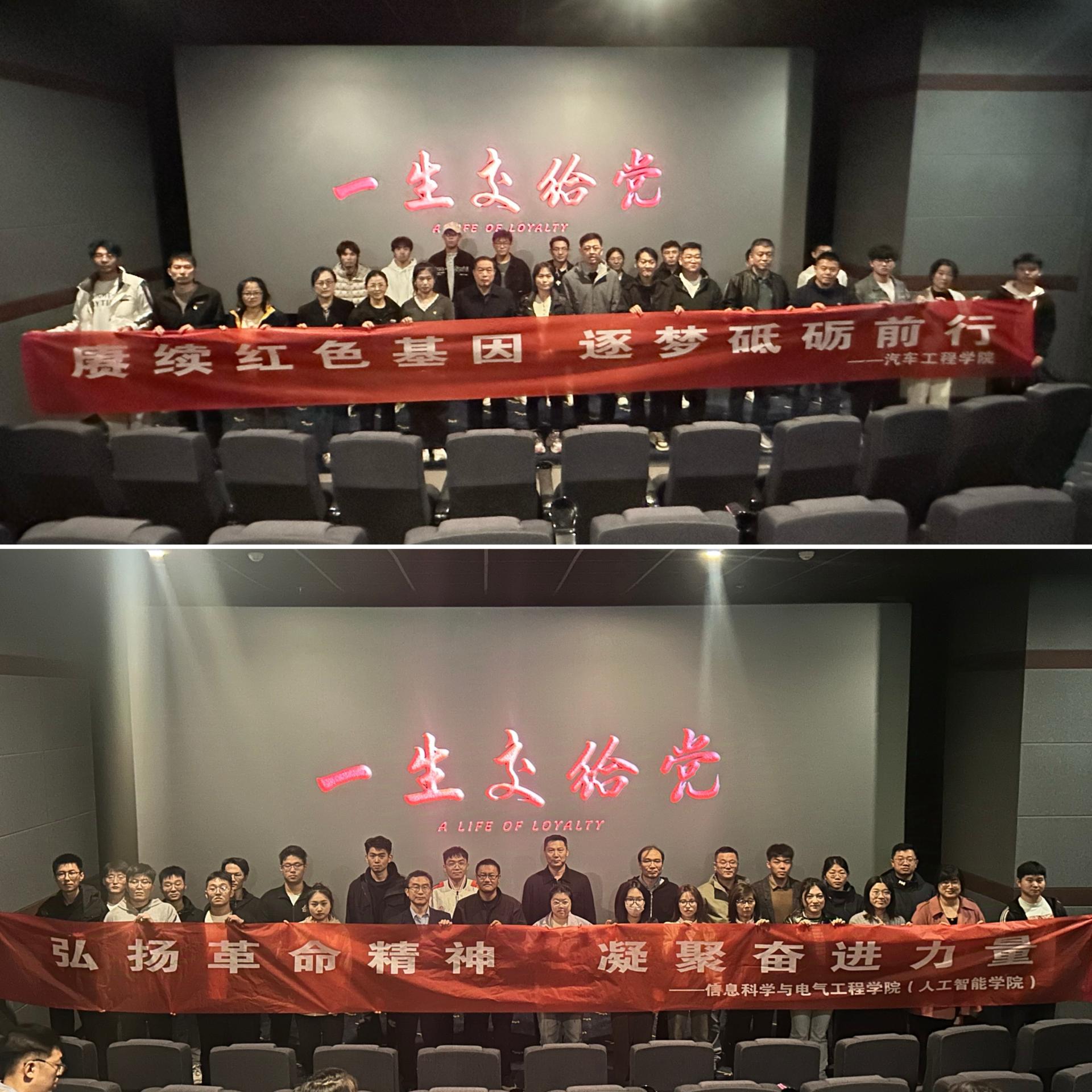 机关党委、汽车工程学院、工程机械学院、信息与电气工程学院(人工智能学院)、经济与管理学院、马克思主义学院、交通土建工程学院等分别组织党员干部、师生群众集体观影。观影过程中,大家被周逸群、金童、肖虹等烈士坚定的革命信念、无私的奉献精神和大无畏的英雄气概深深打动,纷纷表示,将进一步筑牢理想信念,赓续红色基因,始终做到“感党恩、听党话、跟党走”,加强学习、提升素质,为学校高质量发展贡献力量。