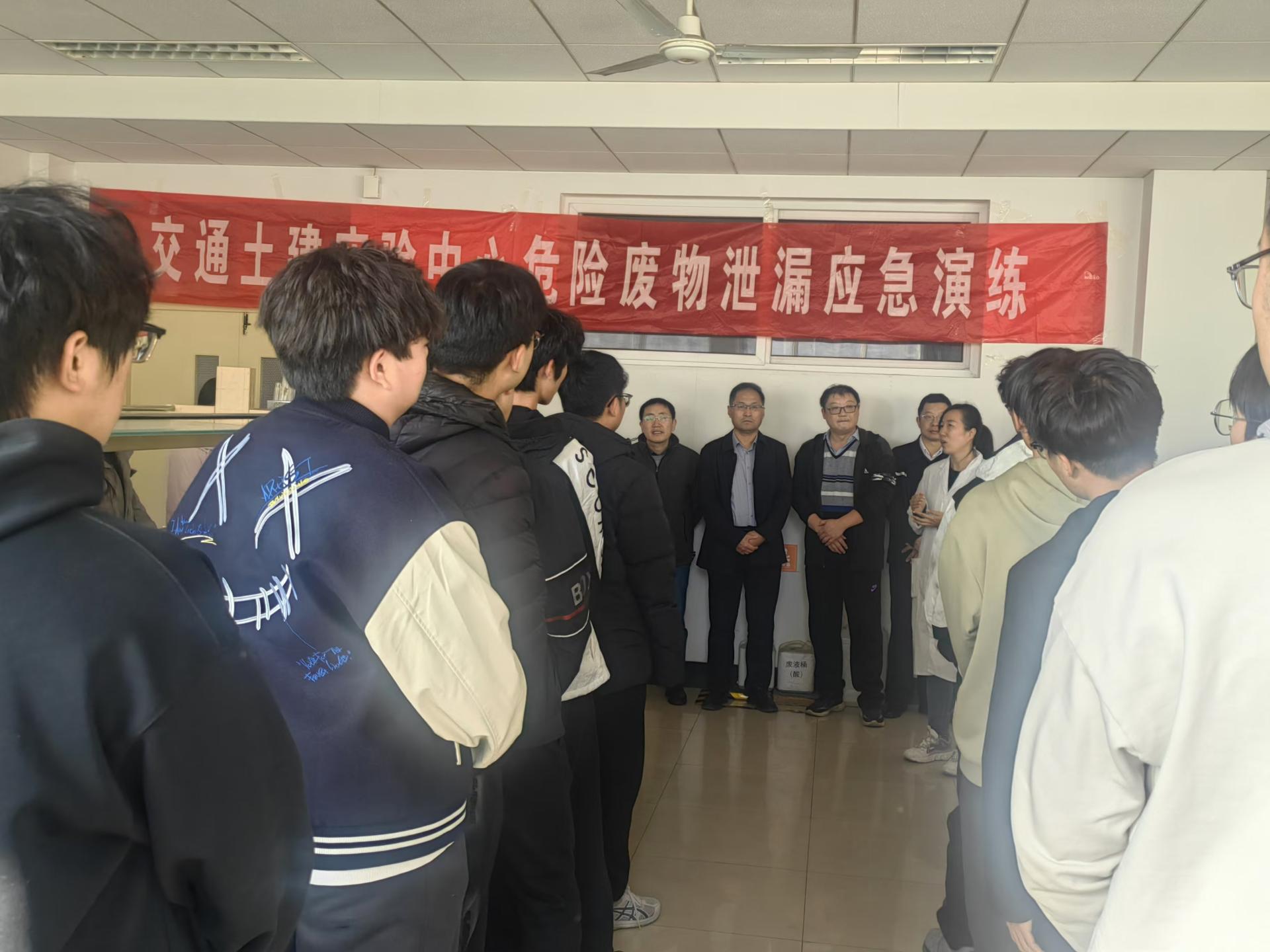交通土建实验中心开展实验室危险废物泄漏专项应急演练。演练前,交通土建工程学院党委书记滕怀国作为应急演练总指挥,强调了实验室安全的重要性,并宣读演练方案;交通土建实验中心老师现场指导学院学生进行实验室危险废物泄漏及火灾发生模拟演练,详细讲解了实验室安全管理的相关内容,强调了实验室注意事项,介绍了实验室应急设备设施的种类及使用方法。