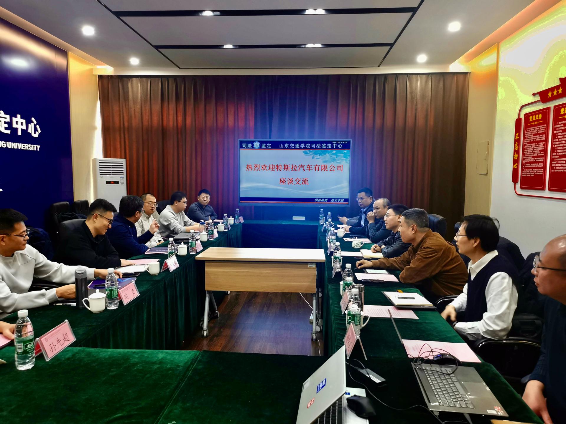 特斯拉汽车有限公司商务解决方案部、工程部、对外事务部负责人,山东警察学院及我校司法鉴定中心相关技术专家参加会议。