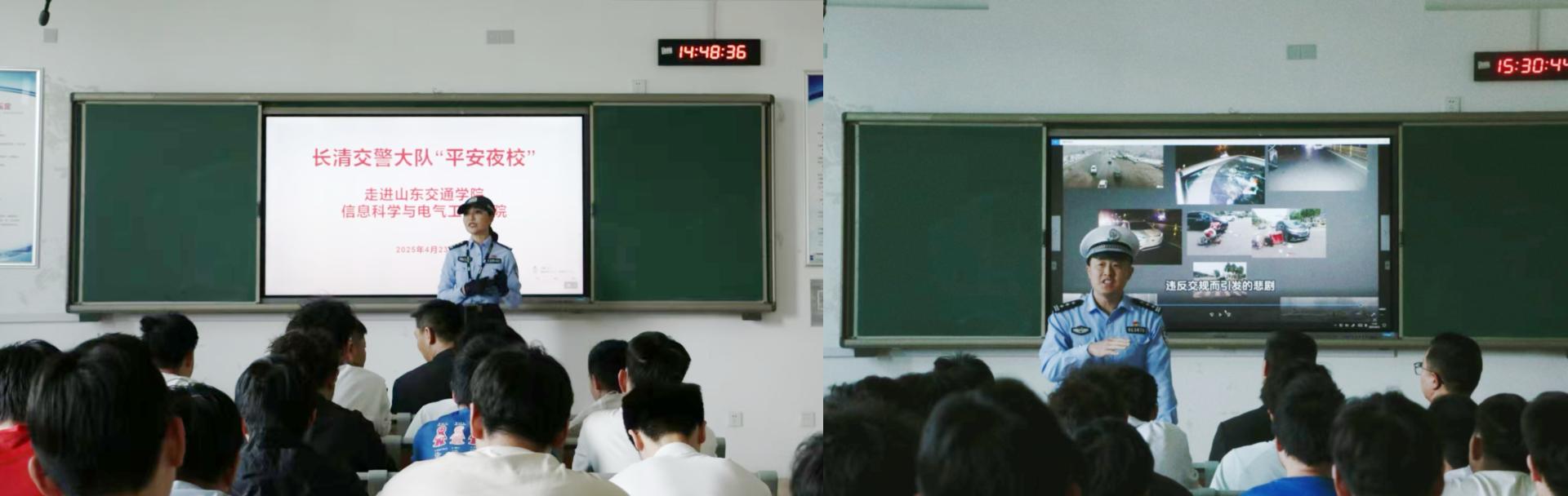 近日,信息科学与电气工程学院(人工智能学院)联合学校安全管理处邀请济南市长清区交警大队(以下简称交警大队)在机电楼B318开展“平安夜校”进校园活动。