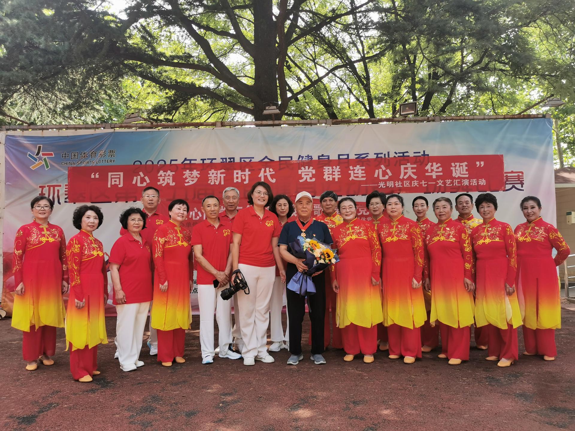 威海校区离退休党支部与威海市环翠区大桥社区、光明社区分别举办文艺汇演,庆祝中国共产党成立104周年。在大桥社区,大家通过诗歌朗诵、歌舞表演、情景剧演绎等多种形式深情献礼,展现了离退休党员“退休不褪色、离岗不离党”的精神风貌;在光明社区,双方举行党建共建签约仪式,并向“光荣在党50年”党员代表颁发纪念章。