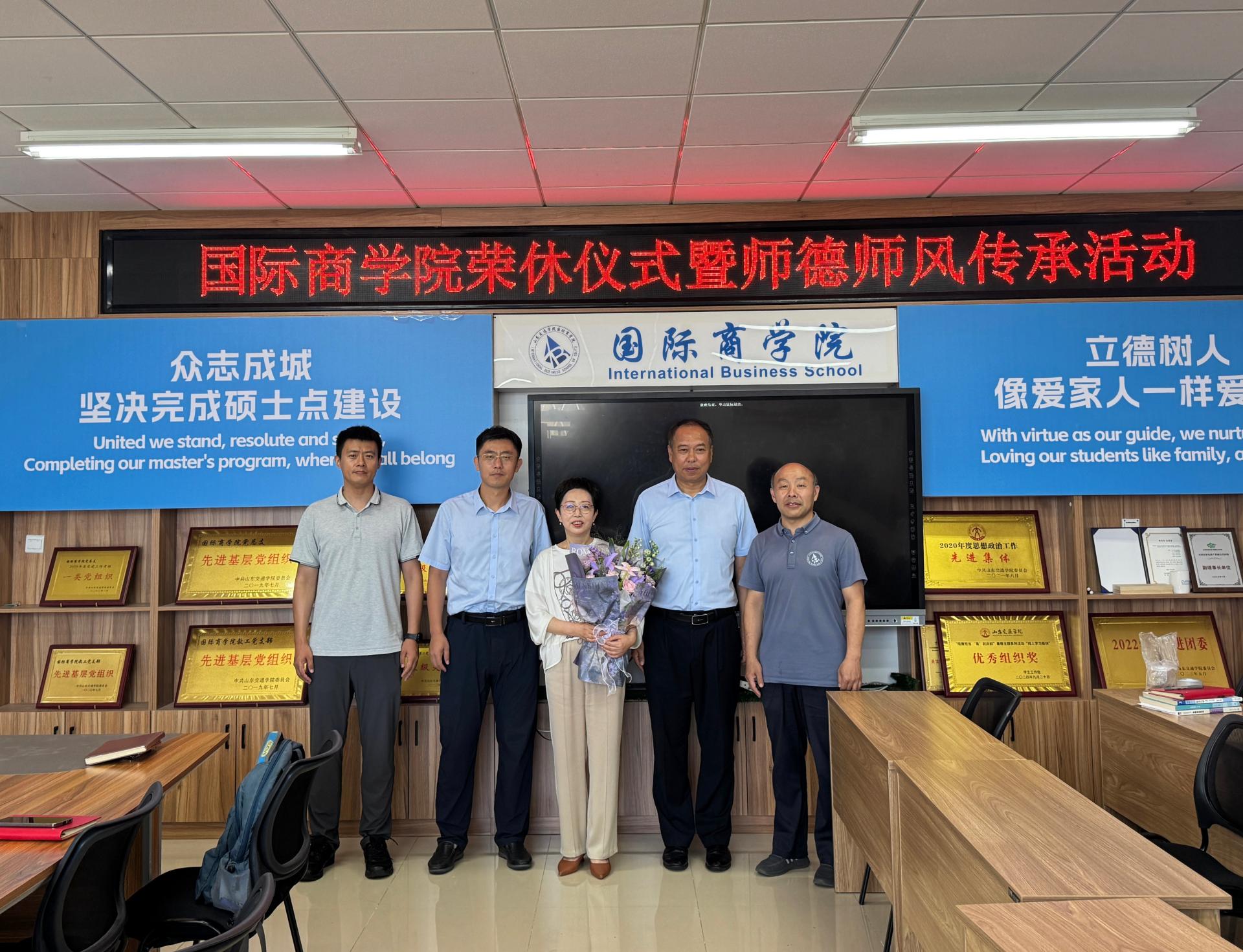 7月4日,国际商学院举办杨海英老师荣休暨师德师风传承活动。国际商学院党委书记刘佳军主持活动。