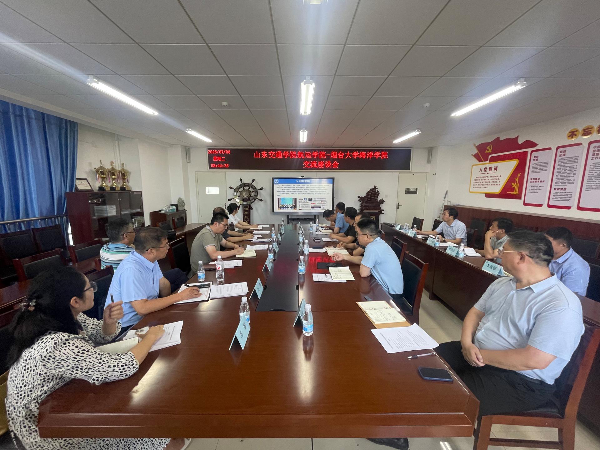 座谈会上,陈海泳对刘焕卫一行的到来表示热烈欢迎。张强介绍了航运学院人才培养、航海类师资培养等方面情况,展示了航运学院学科专业、实践教学体系建设等方面成果。船员教育与培训质量管理处处长马强分享了船员教育与培训质量管理工作经验,威海校区管理办公室社会服务部负责人分享了船员培训与社会服务对接工作经验。双方围绕专业定位与人才培养体系建设、师资队伍建设与科研能力提升、实践教学创新与校企协同育人、学生培养质量与就业竞争力提升等内容充分交流,均表示,将加强项目合作和资源共享,建立常态化交流机制,共同推动航海类专业高质量发展。