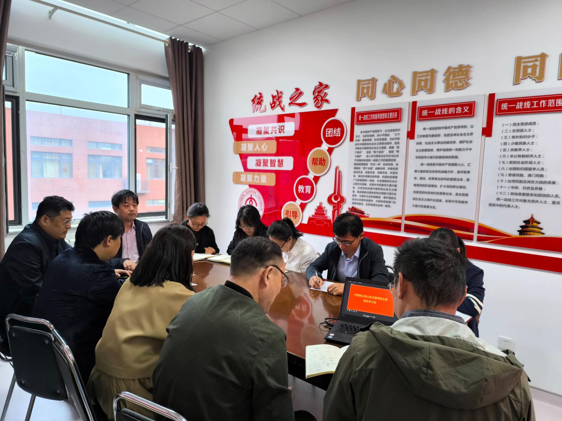 党委统战部相关负责人,致公党山东交通学院支部全体党员参加会议。