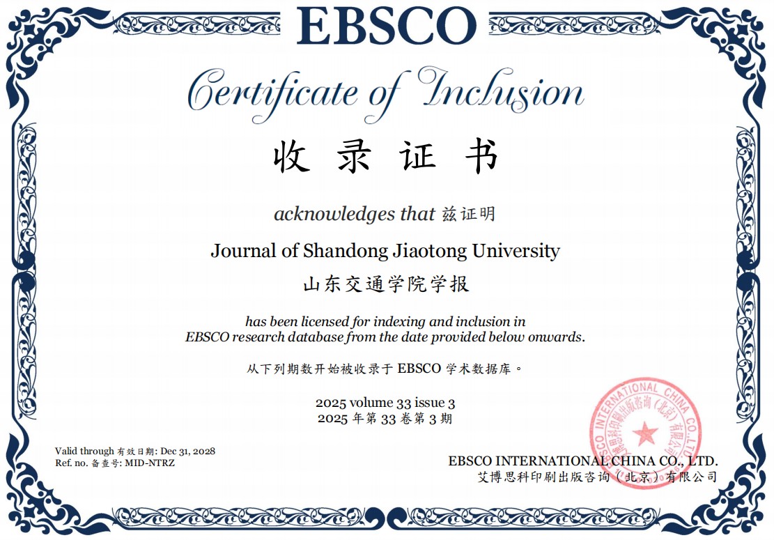 近日,《山东交通学院学报》通过美国EBSCO学术数据库顾问团审核,自2025年第3期起正式被EBSCO学术数据库全文收录。这是继美国化学文摘(CA)数据库、日本科学技术振兴机构(JST)数据库收录后再次被国外数据库收录,标志着期刊国际化进程取得又一重要突破。