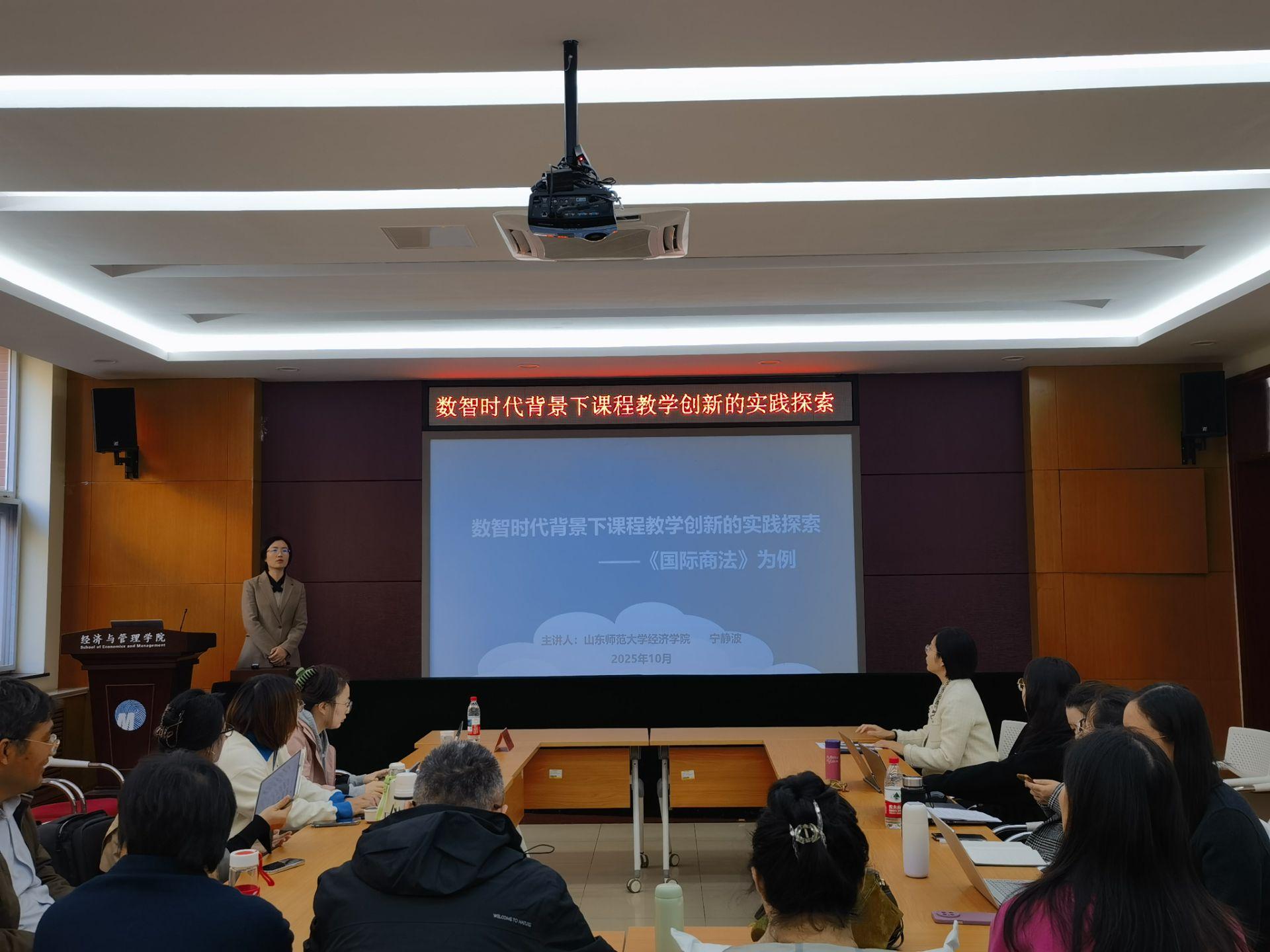 近日,经济与管理学院邀请山东师范大学经济学院副院长宁静波教授在长清校区1B104开展教学教研能力提升专题讲座。经济与管理学院院长耿中元参加活动。