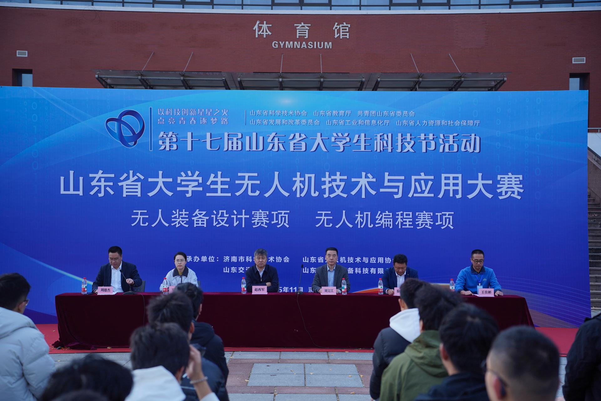 11月15日,第十七届山东省大学生科技节活动——山东省大学生无人机技术与应用大赛无人装备设计、无人机编程赛项在我校举行,山东省无人机技术与应用协会会长赵西军、副秘书长徐天戈,我校航空学院院长刘文江参加开幕式。