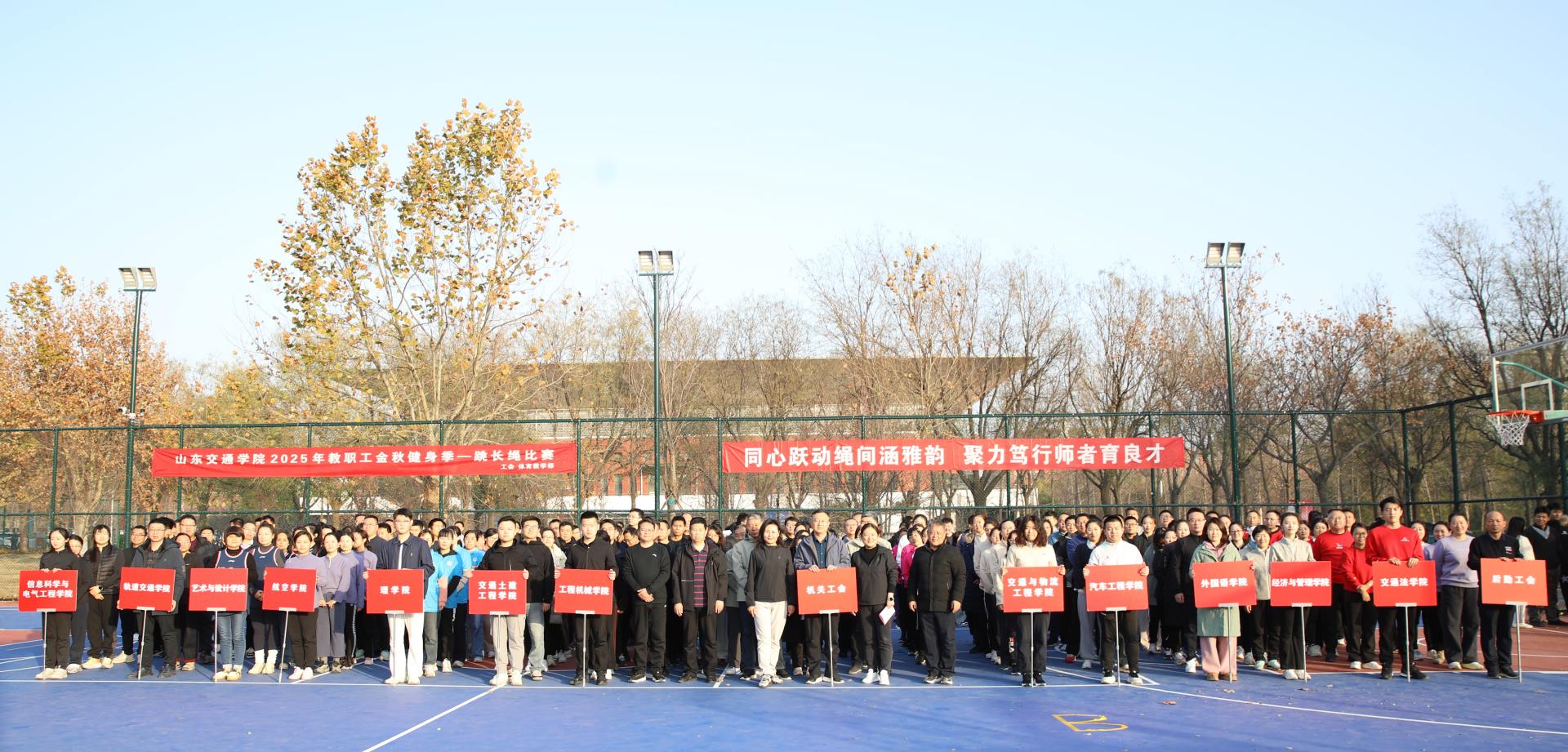 11月26日,学校2025年“金秋燃活力,绳跃展师风”教职工集体跳长绳比赛在长清校区篮球场顺利举行。本次活动由学校工会与体育教学部联合组织,威海校区同步开展,校工会主席闫晓阳主持活动。