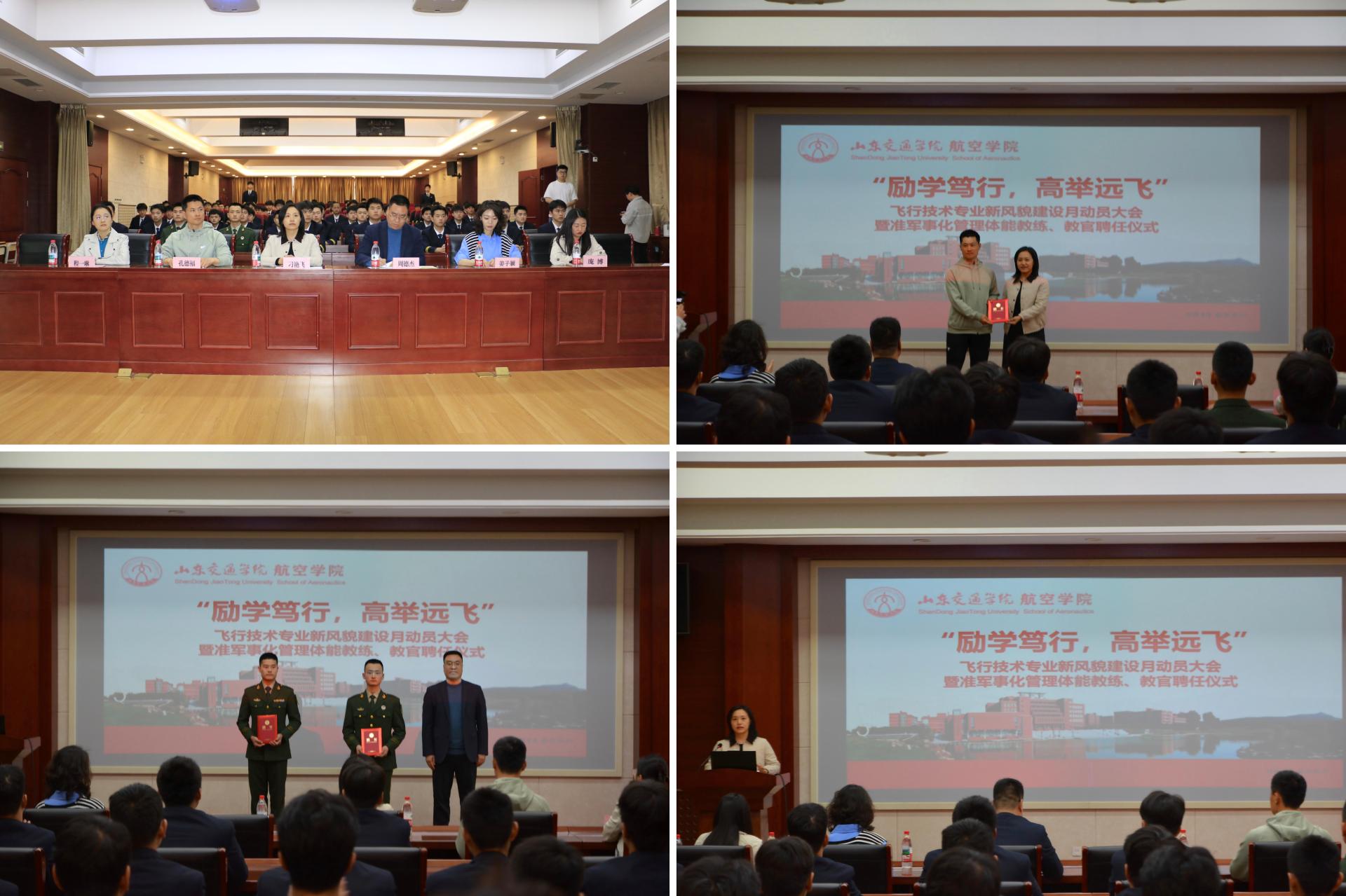 为进一步推进飞行技术专业人才培养,强化准军事化管理效能,近日,航空学院在长清校区工训中心H401举行飞行技术专业新风貌建设月动员大会暨准军事化管理体能教练、教官聘任仪式。学院党委书记刁艳飞出席会议。
