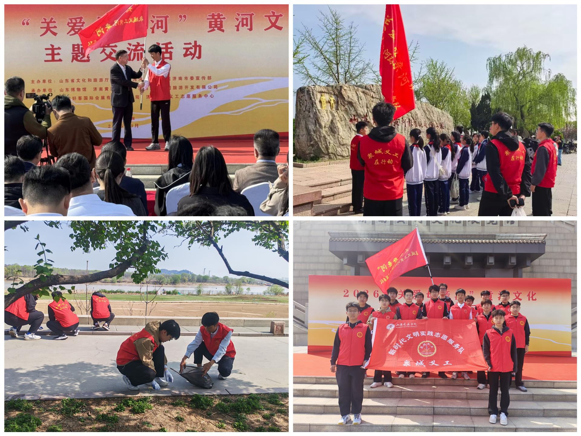 3月29日,2026“关爱母亲河”黄河文化主题交流活动在济南黄河文化展馆门前广场举行。“泉城义工”山东交通学院服务团15名志愿者全程参与,提供暖心志愿服务,助力活动顺利开展。