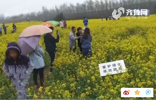 小雨纷纷,却不减市民赏花热情,赏花的步行道,被市民从花田里带出来的泥土弄得一片狼藉。这让毕业3年,再次回到母校赏花的齐先生看着很心疼,明明有赏花的小道,大家却还是自己开道。 济南市民齐有道说:“大家都来保护它们,毕竟就这一段时间,过段时间就看不到了。” 油菜花花期一般只有20多天,一旦被践踏,不仅没办法继续生长,还会影响整个花海的观赏效果。 市民纷纷对践踏油菜花的行为表示不满:“刚才看见一个小朋友制止大家踩踏观花”“我觉得这里太漂亮了,我希望大家不要来这里随便践踏这些油菜花。” 受到不文明踏青影响的还有我们的母亲河,在济南黄河森林公园有两堆垃圾,最近的离黄河不到3米远,北风一吹,塑料袋就往河里跑。而附近,记者没有看到垃圾桶,也没有工作人员来清扫。下着小雨,来黄河边上踏青烧烤的市民不是很多,但遗留下来的垃圾却不少。 济南市民安子未说:“黄河是我们的母亲河,不可以乱扔垃圾,吃完烧烤之后应该把垃圾带回家。”