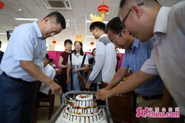 "同学们,祝你们生日快乐。"陈校长的一句话感动了在场的不少学生。原来,包括信息专业王渝,法学院王艺文,外国语学院林语嫣在内的七名新生今天同天生日,报道时学生处的工作人员专门留意了这个信息,特意给他们买了蛋糕,集体为他们过生日。"真的是个惊喜,在家里都没怎么过过生日,上大学了竟然还能过生日。"来自高密的学生王渝告诉记者,自己要打电话告诉爸爸妈妈,向他们述说这一喜悦,接下几年,自己一定会好好学习,回馈学校。