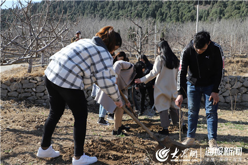 大众网教育·海报新闻讯(记者 聂忆宏 实习记者 李筱佳)3月6日上午,在济南恒瑞生态农业有限责任公司驻地,来自山东交通学院的60余名师生代表参加了劳动体验活动。基地工作负责人带领大家对果木区、养殖区、种植区、生产区进行了实地参观和介绍,并且开展了植树造林活动和“山东交通学院耕实教育基地”矿泉水贴标劳动体验。