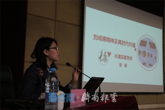 全区学习贯彻党的十九大精神宣讲团成员、长清区委党校讲师赵珊作《刘成德精神及其时代价值》报告。